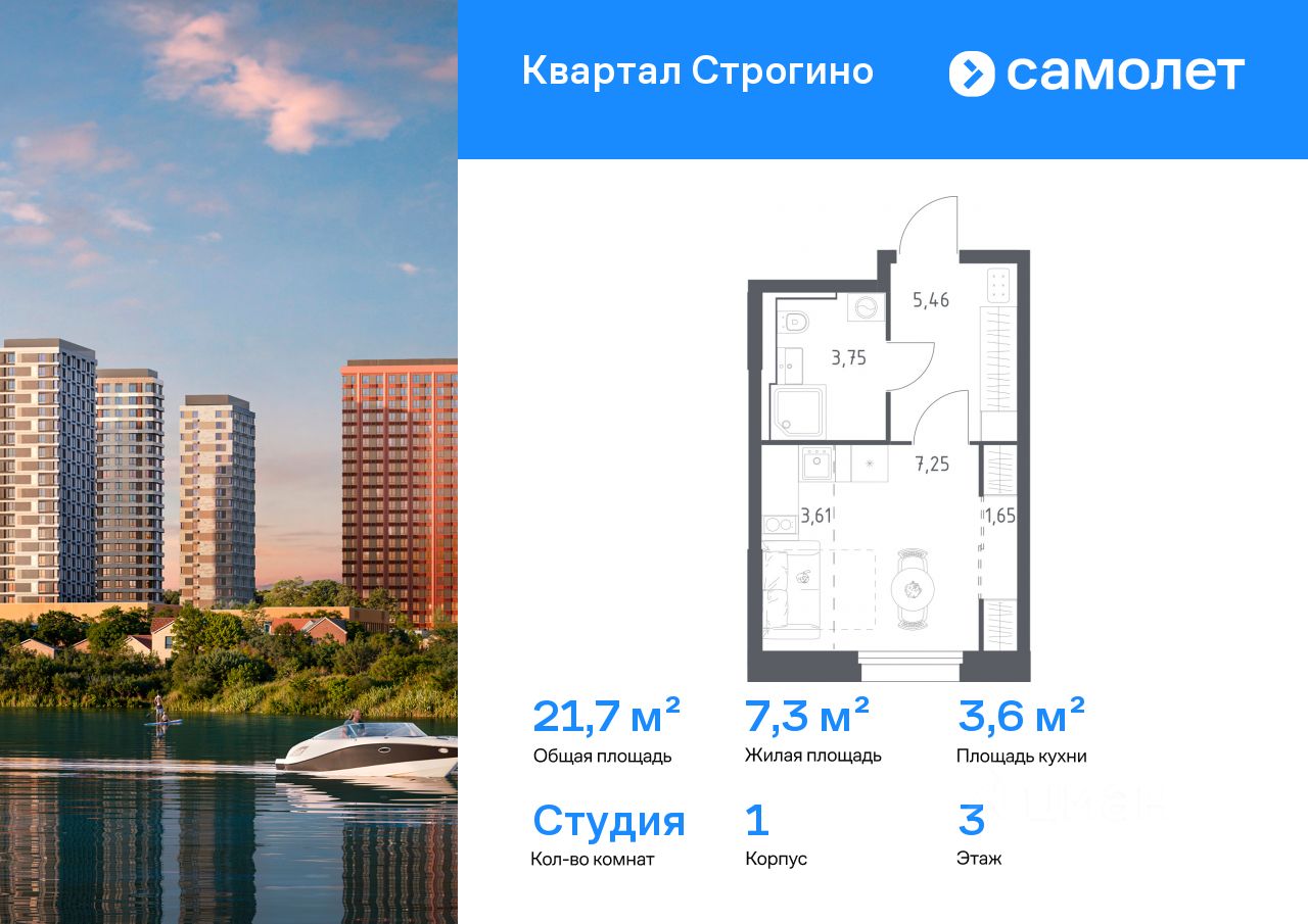 Строим кварталы для жизни с заботой о будущем. Предлагается квартира студия комфорт-класса 21,72 кв.м в корпусе 1 на 3 этаже, в ЖК ''Квартал Строгино'' Квартира с чистовой отделкой. Доступность дополнительных опций уточняйте у застройщика.
