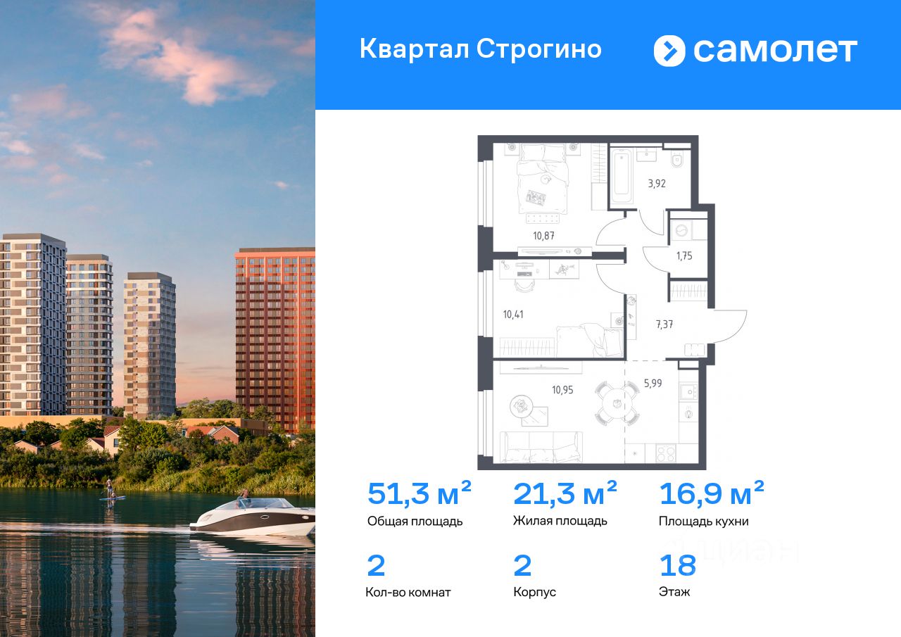 Строим кварталы для жизни с заботой о будущем. Предлагается 2-комнатная квартира комфорт-класса 51,26 кв.м в корпусе 2 на 18 этаже, в ЖК ''Квартал Строгино'' Квартира без отделки. Доступность опции ''отделка'' и возможность комплектации мебелью и декором уточняйте у застройщика.
