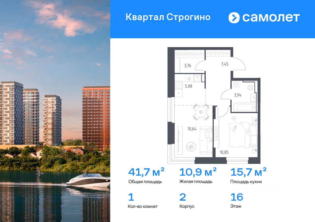 Строим кварталы для жизни с заботой о будущем. Предлагается 1-комнатная квартира комфорт-класса 41,72 кв.м в корпусе 2 на 16 этаже, в ЖК ''Квартал Строгино'' Квартира без отделки. Доступность опции ''отделка'' и возможность комплектации мебелью и декором уточняйте у застройщика.