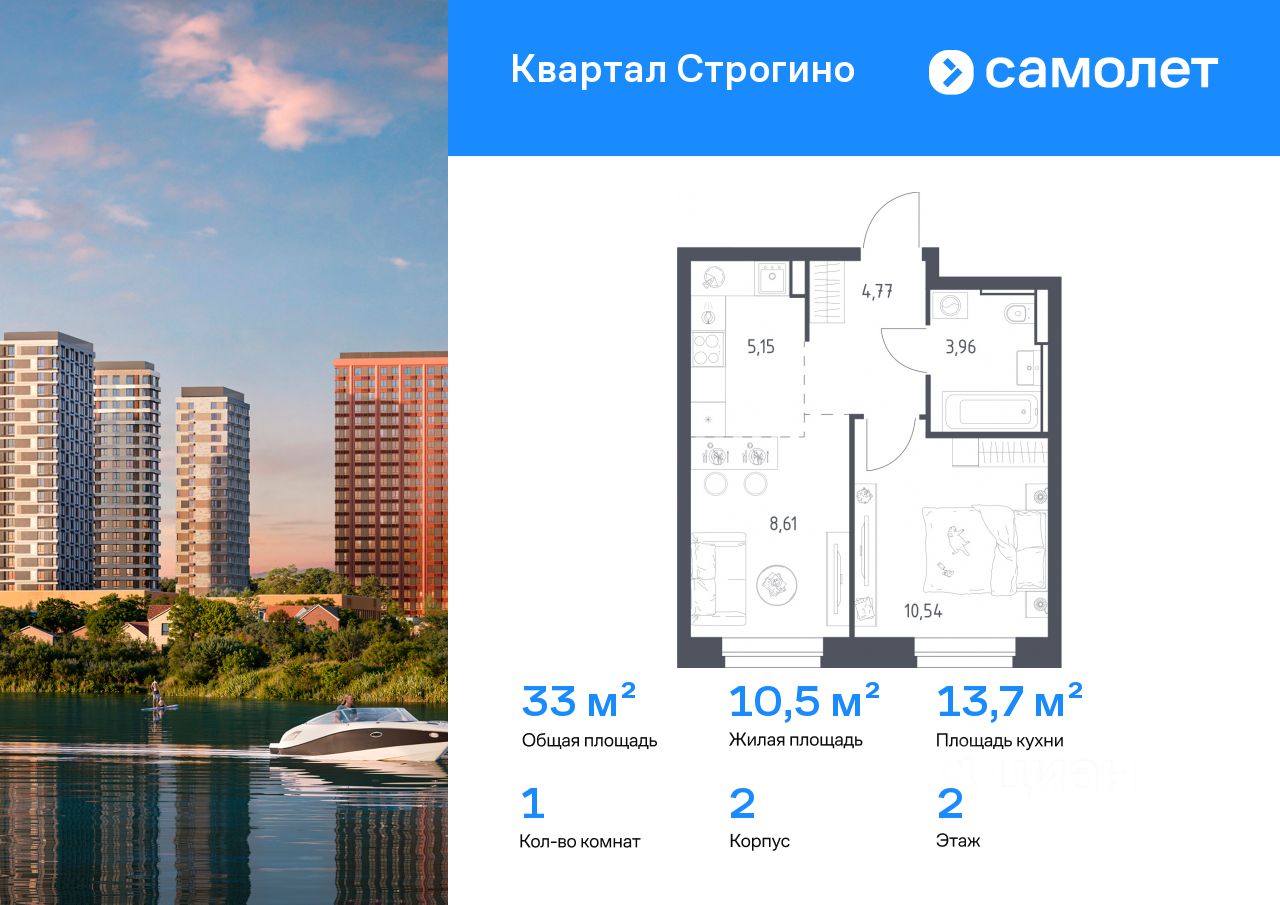 Строим кварталы для жизни с заботой о будущем. Предлагается 1-комнатная квартира комфорт-класса 33,03 кв.м в корпусе 2 на 2 этаже, в ЖК ''Квартал Строгино'' Квартира без отделки. Доступность опции ''отделка'' и возможность комплектации мебелью и декором уточняйте у застройщика.