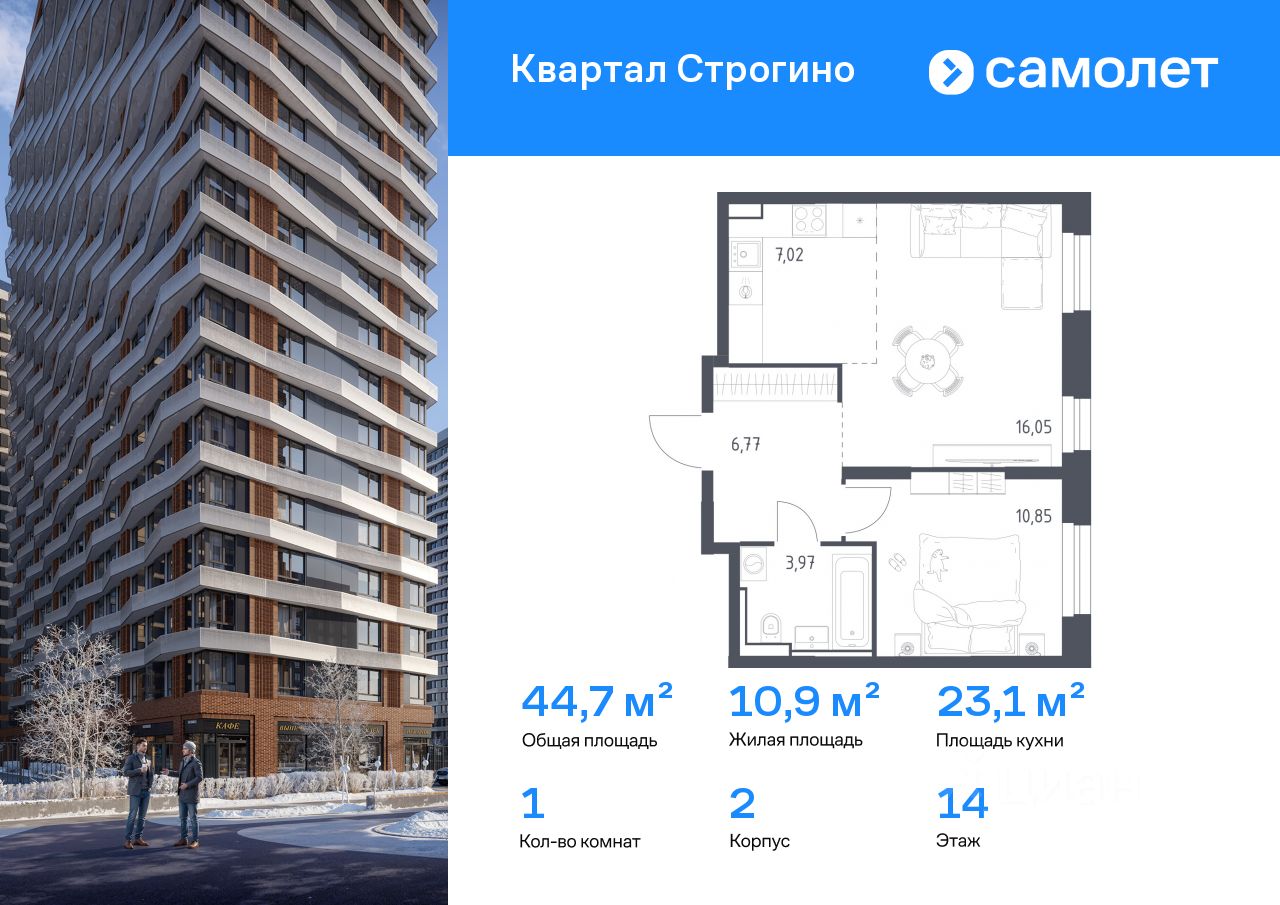 Строим кварталы для жизни с заботой о будущем. Предлагается 1-комнатная квартира комфорт-класса 44,66 кв.м в корпусе 2 на 14 этаже, в ЖК ''Квартал Строгино'' Квартира с чистовой отделкой. Доступность дополнительных опций уточняйте у застройщика.