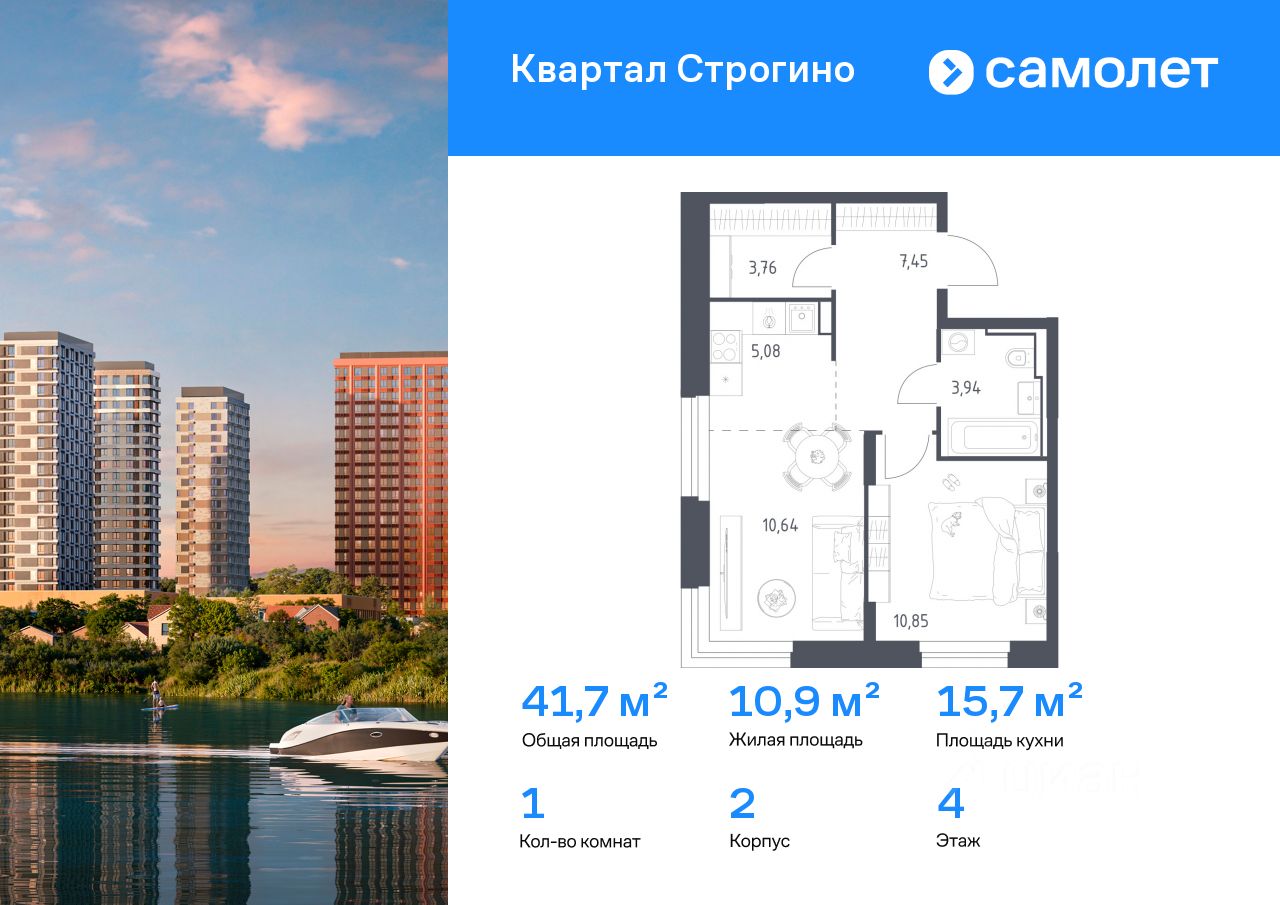 Строим кварталы для жизни с заботой о будущем. Предлагается 1-комнатная квартира комфорт-класса 41,72 кв.м в корпусе 2 на 4 этаже, в ЖК ''Квартал Строгино'' Квартира без отделки. Доступность опции ''отделка'' и возможность комплектации мебелью и декором уточняйте у застройщика.