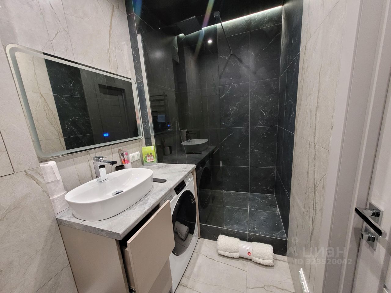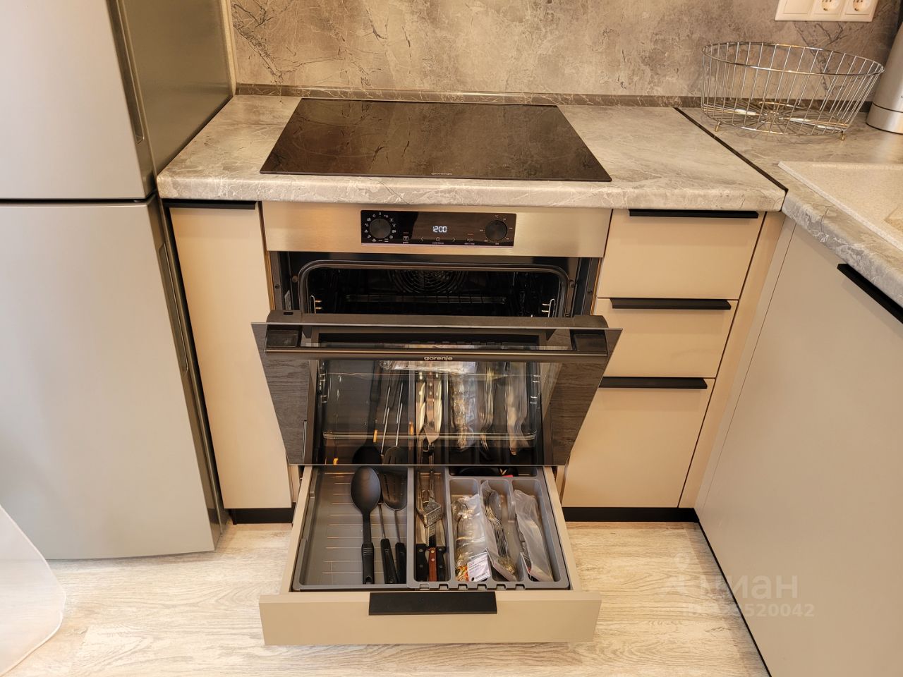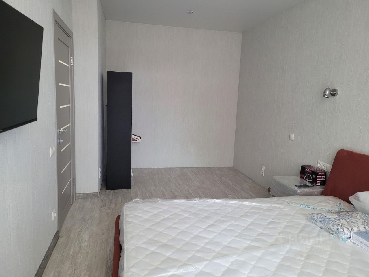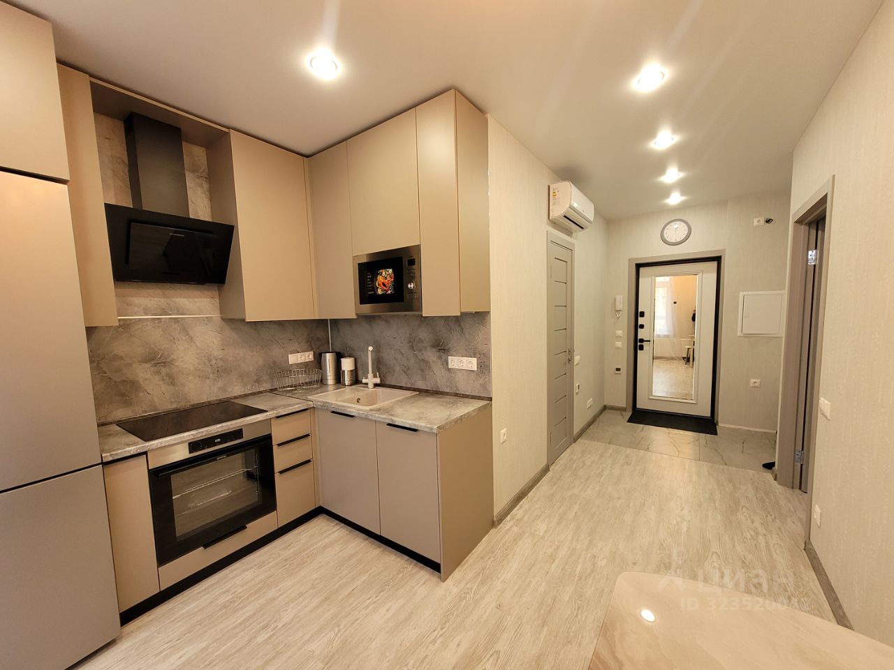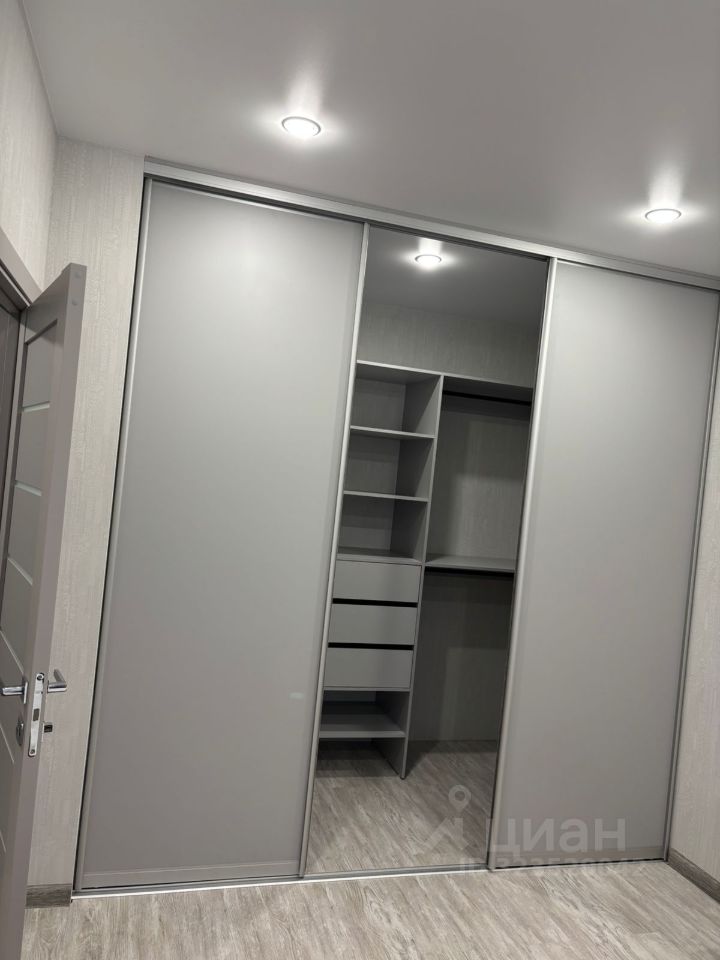 В комнате и в прихожей вместительный шкаф-гардеробная и шкаф для хранения, теплые полы, на кухне установлен фильтр для воды, встроенная посудомоечная машинка, встроенная микроволновка, духовой шкаф и большой холодильник.