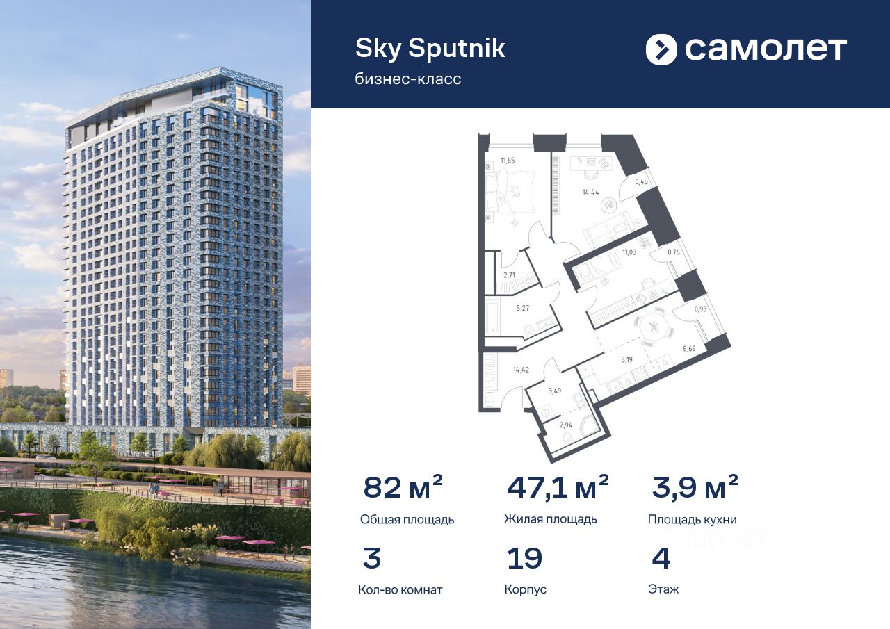 Строим кварталы для жизни с заботой о будущем. Предлагаются 3-комнатные апартаменты бизнес-класса 81,97 кв.м в корпусе 19 на 4 этаже, в Sky Sputnik Апартаменты без отделки. Доступность опции ''отделка'' и возможность комплектации мебелью и декором уточняйте у застройщика.