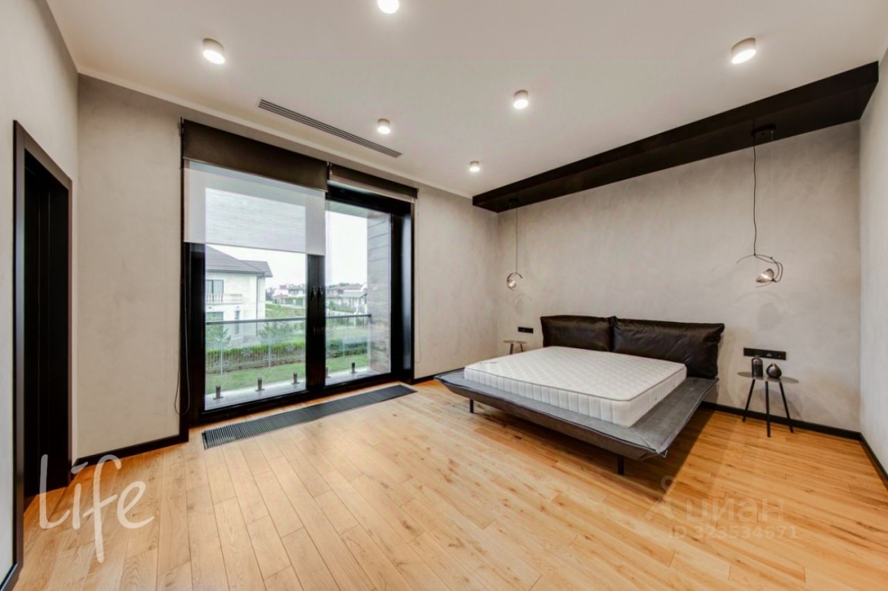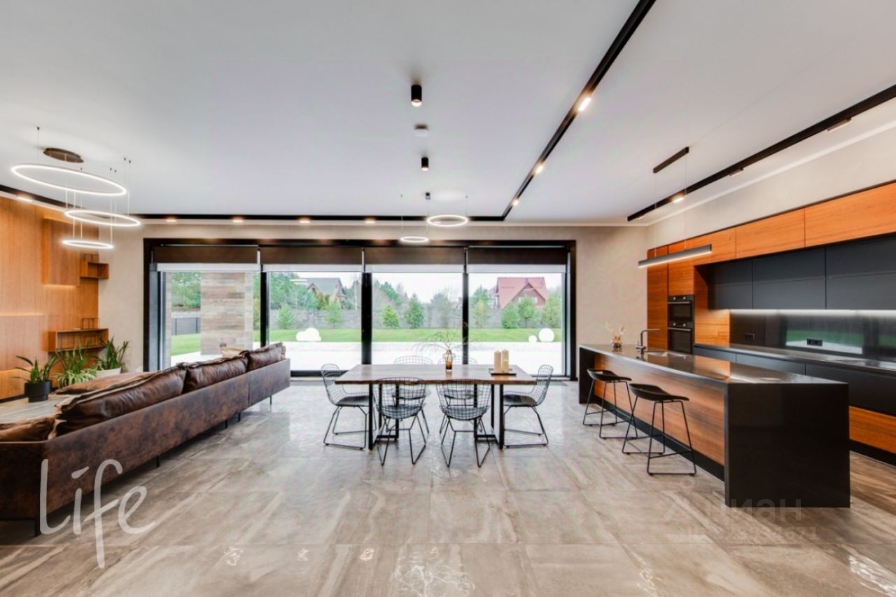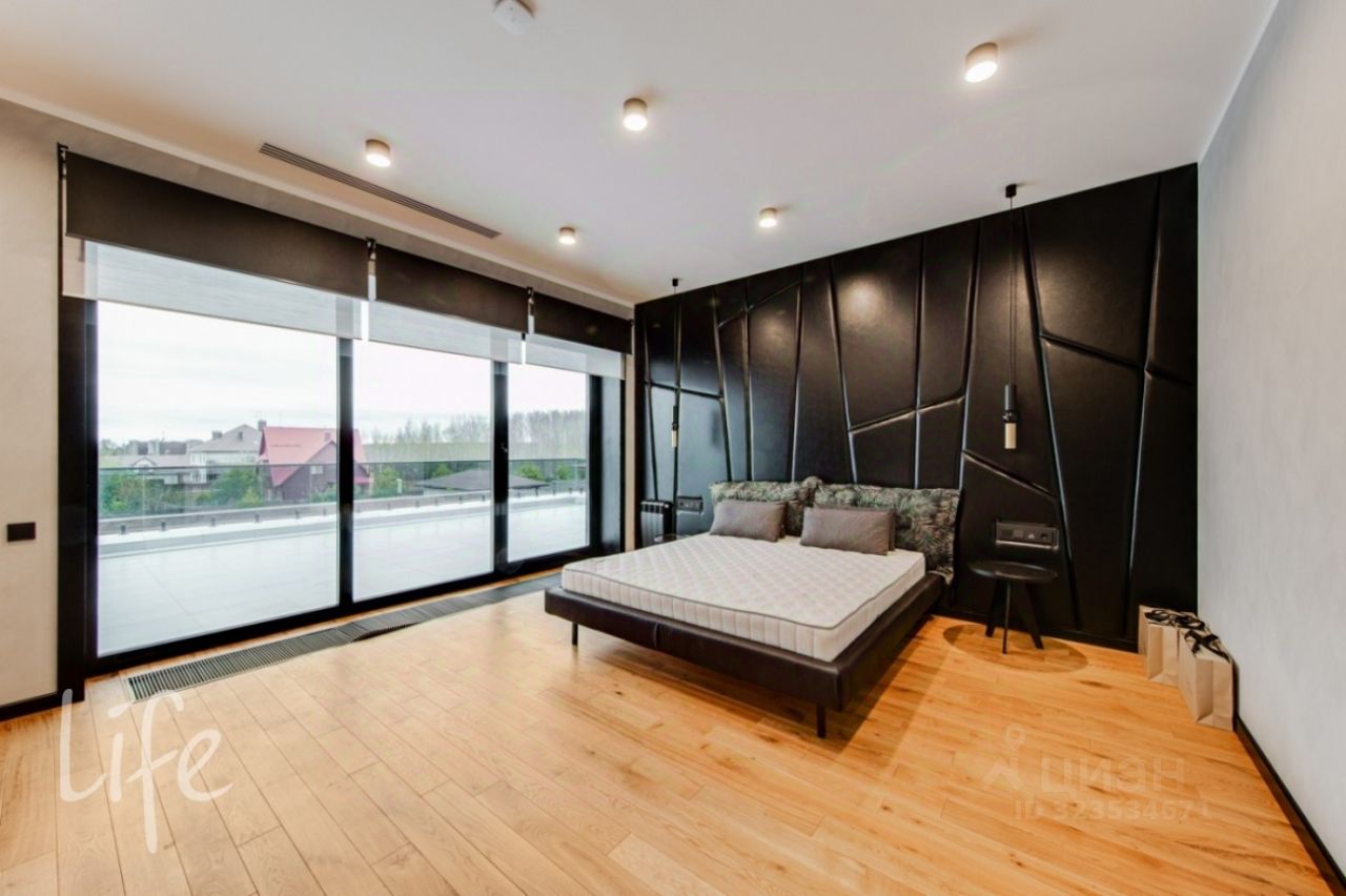 Коттеджный поселок ''Шато Соверен''. Новый, современный дом в стиле Хай-Тек, с панорамным остеклением. Полностью под ключ, меблирован, оборудован необходимой бытовой техникой. Конструктив, фундамент/перекрытия монолитные, стены кирпич, плоская кровля. Интерьер дизайнерский, использованы дорогостоящие материалы, со вкусом подобрана мебель и аксессуары. В доме гостиная-кухня-столовая, пять спален, четыре санузла, зона СПА с сауной.