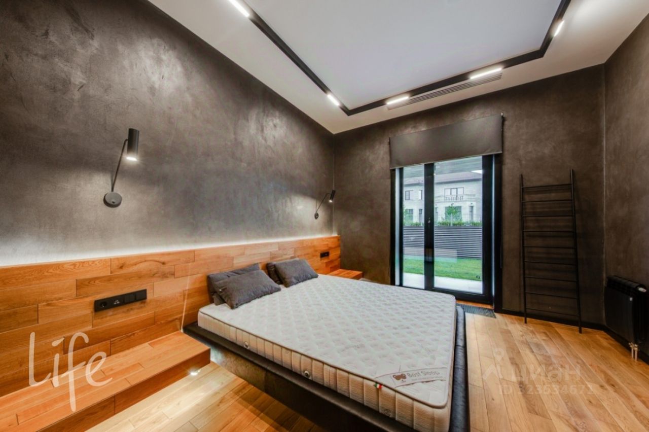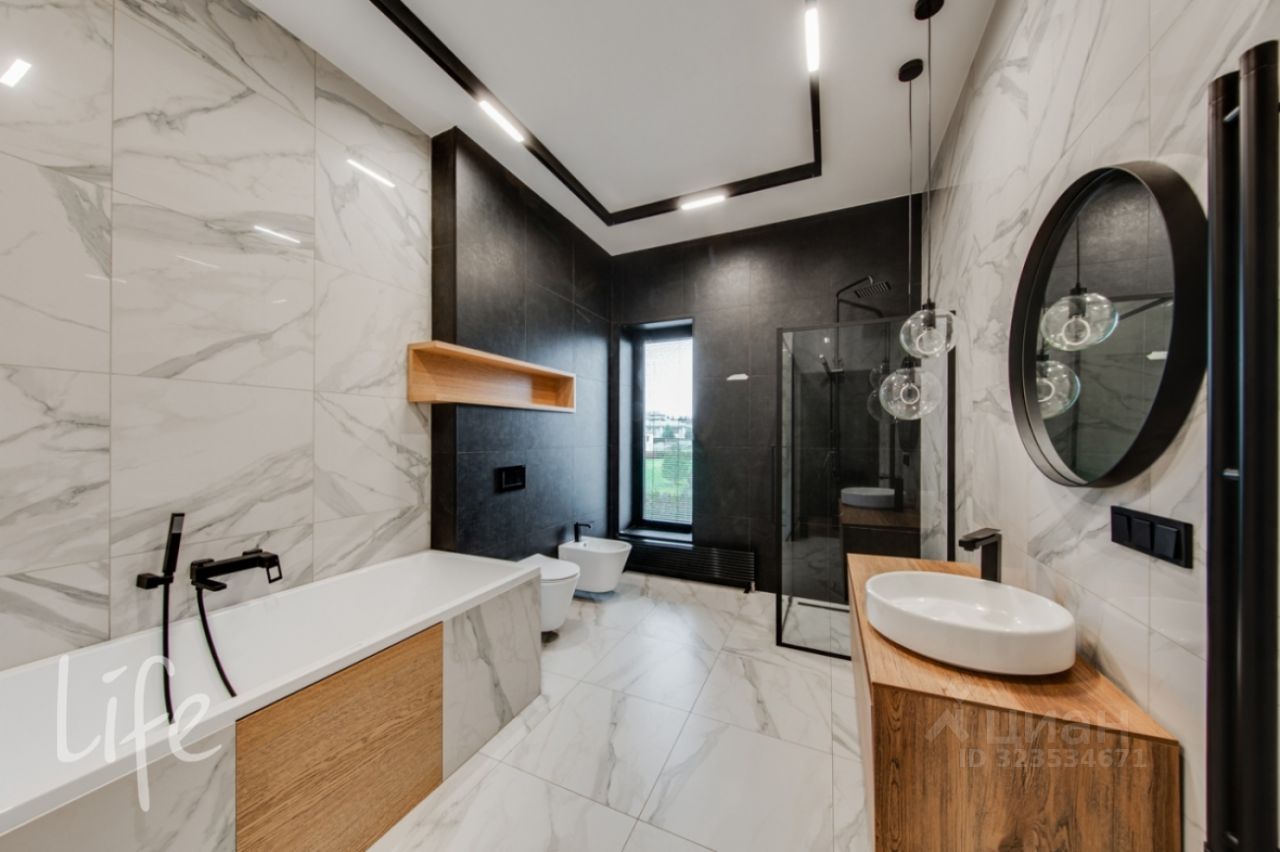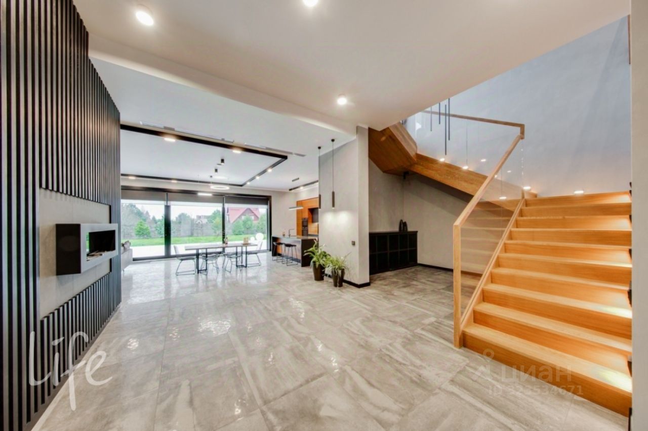 Коттеджный поселок ''Шато Соверен''. Новый, современный дом в стиле Хай-Тек, с панорамным остеклением. Полностью под ключ, меблирован, оборудован необходимой бытовой техникой. Конструктив, фундамент/перекрытия монолитные, стены кирпич, плоская кровля. Интерьер дизайнерский, использованы дорогостоящие материалы, со вкусом подобрана мебель и аксессуары. В доме гостиная-кухня-столовая, пять спален, четыре санузла, зона СПА с сауной.