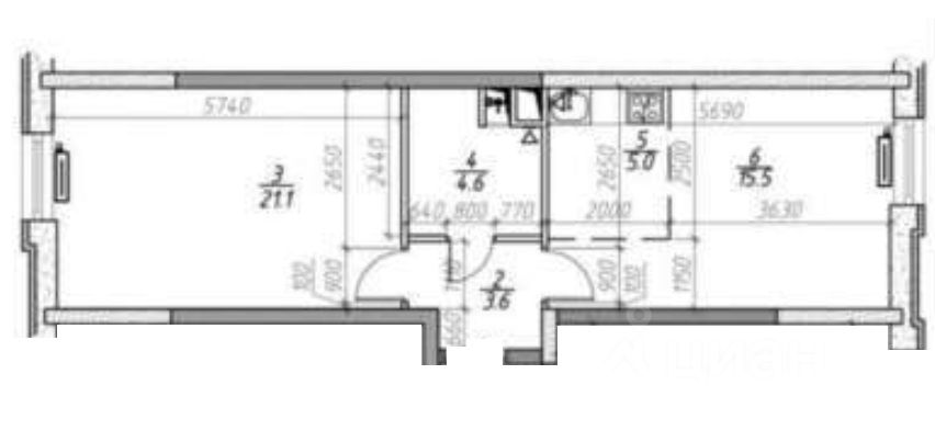 Кухня -гостиная 20,5 кв.м. Спальня 21,1 кв.м.