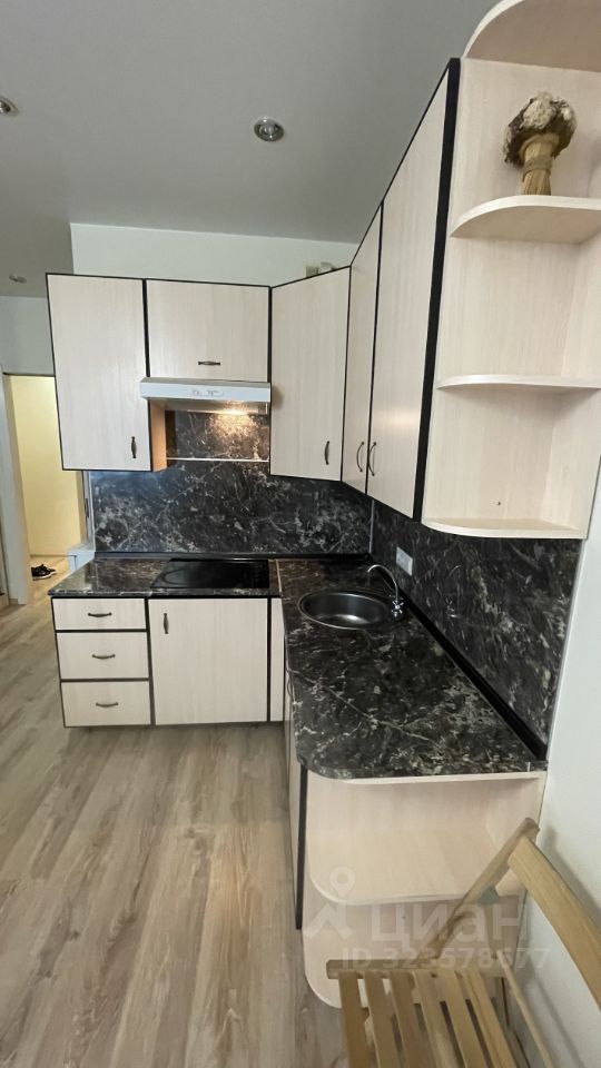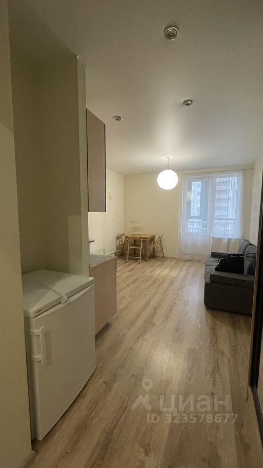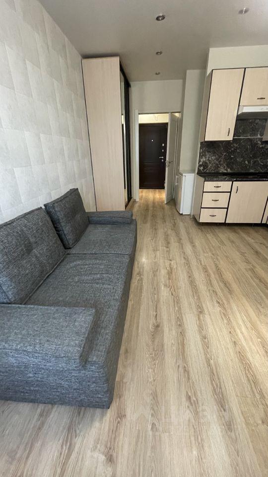 Квартира в хорошем состоянии с косметическим ремонтом. В студии есть вся необходимая мебель, что позволяет сразу заселиться и жить с комфортом. Из техники предусмотрены холодильник и стиральная машина. Санузел совмещённый, оборудован ванной. Дополнительно имеется лоджия, где можно обустроить уютное место для отдыха.