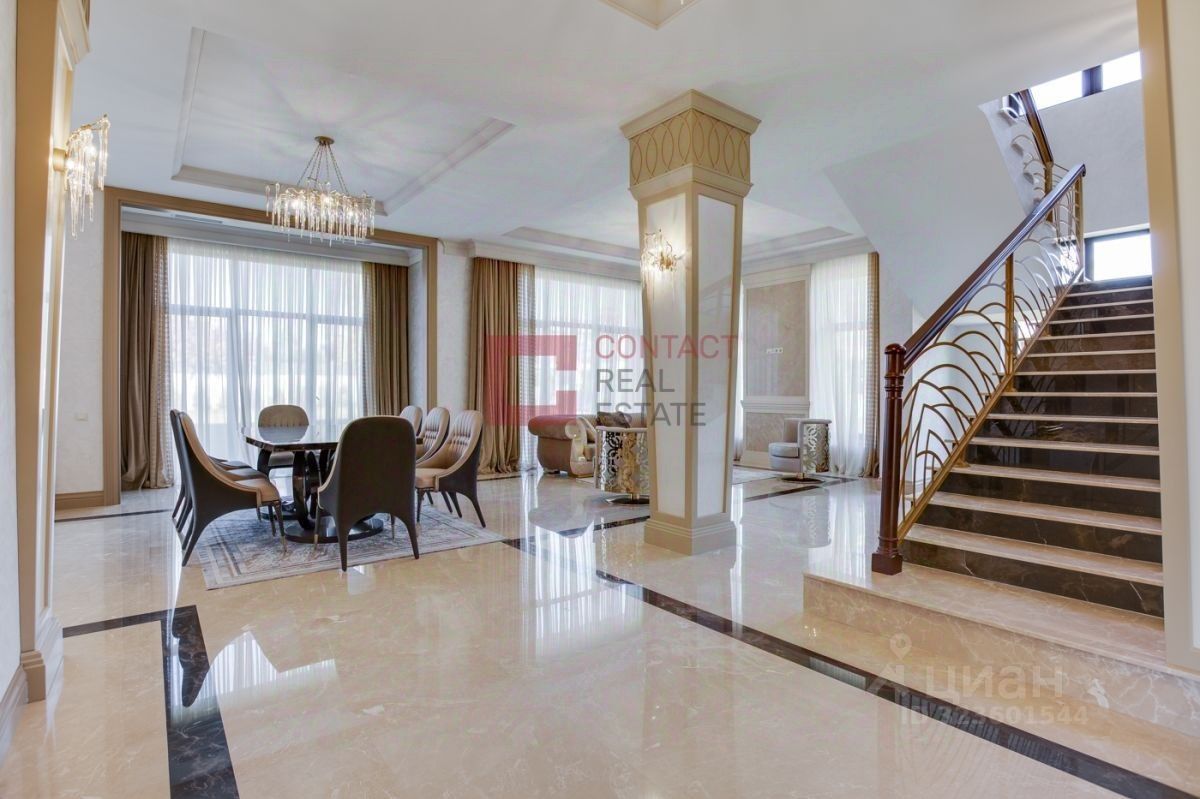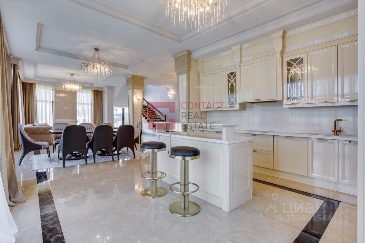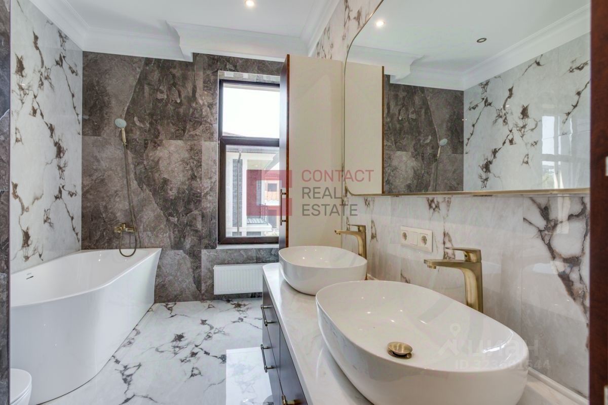 ID 538690. КП Прозорово. Кирпичный дом 400 кв.м на участке 12 соток в охраняемом коттеджном посёлке. Фасад дома отделан немецкой плиткой клинкер. Во внутренней отделке использованы исключительно натуральные материалы: мрамор, спальни/кабинет - паркет(Франция), ванные комнаты итальянская керамика. Мебель изготовлена по дизайн-проекту на заказ(Италия и Турция), люстры/бра - ручная работа Дом оборудован бытовой техникой (варочная панель, духовой шкаф, пароварка, холодильник, посудомоечная машина) бренда Miele. Планировка: 1 этаж: прихожая, гардеробная комната, гостевой санузел, кабинет, гостиная, кухня с выходом на террасу, столовая с выходом на террасу, гараж на два машиноместа, 2 этаж: мастер-спальная с ванной комнатой, две детские спальни с индивидуальными ванными комнатами, гостевая спальня, постирочная.
