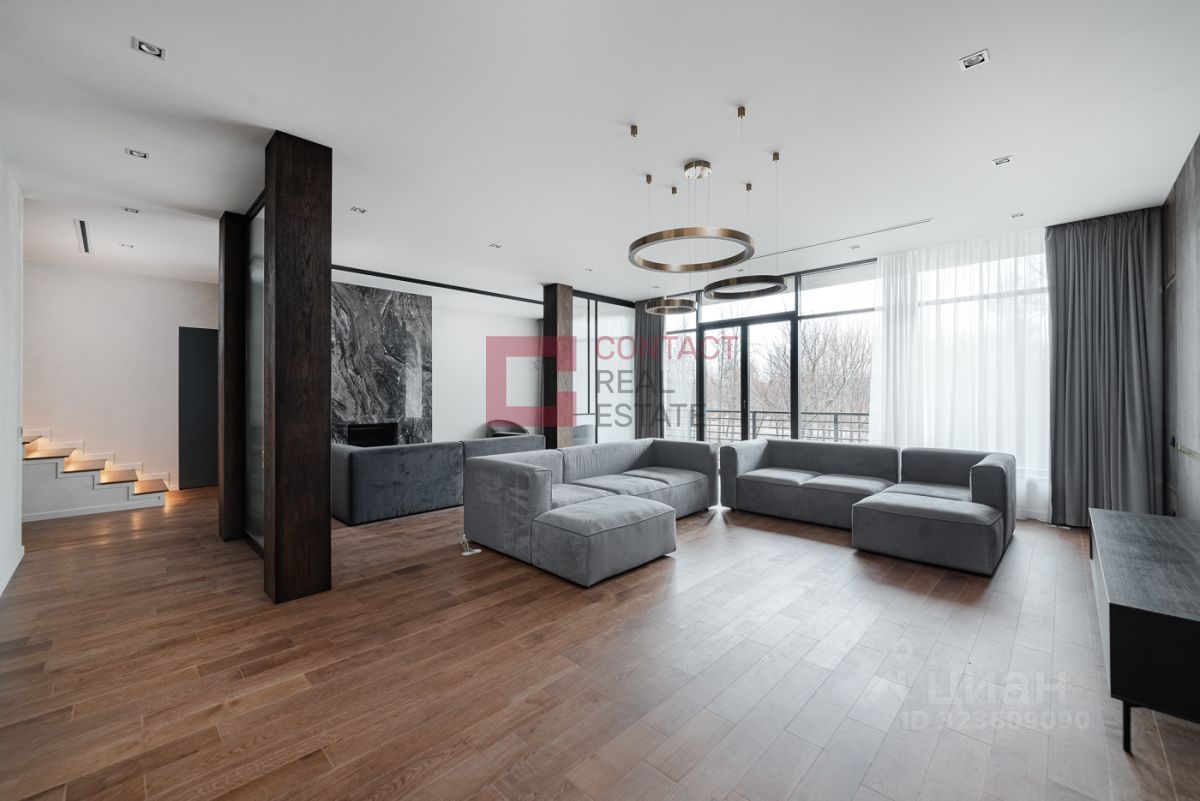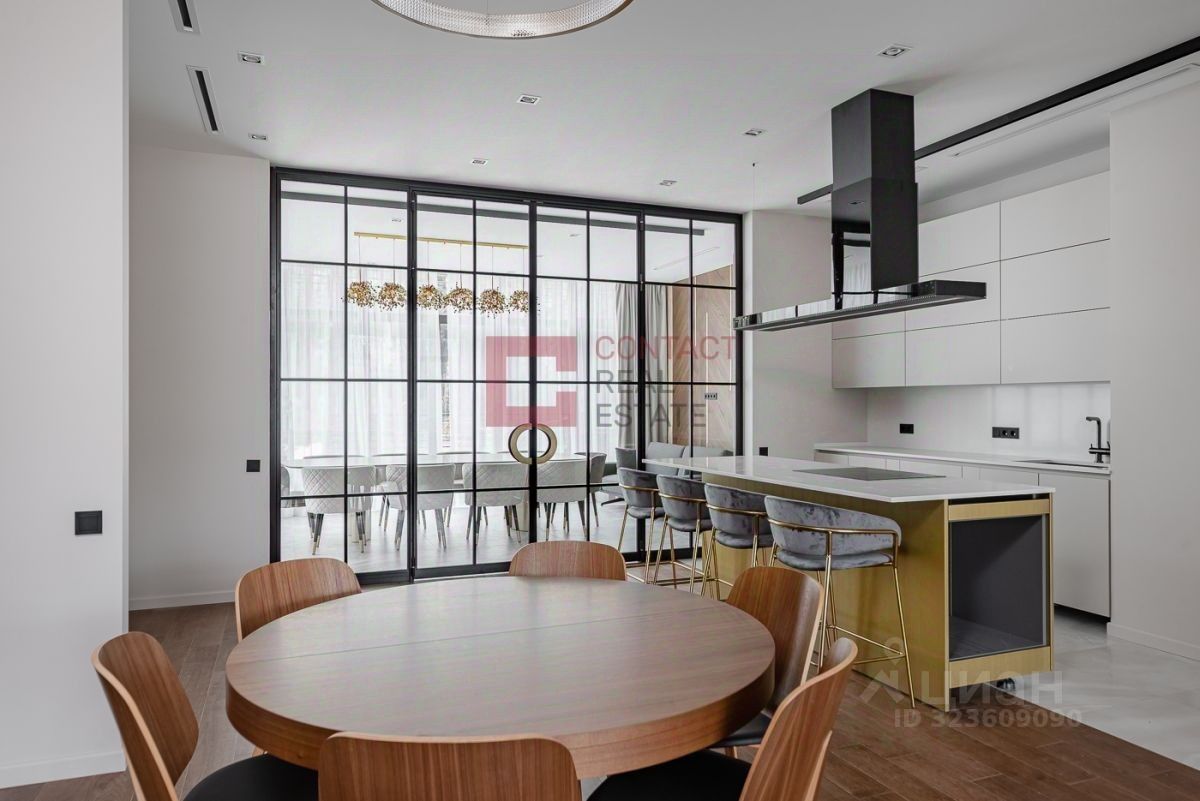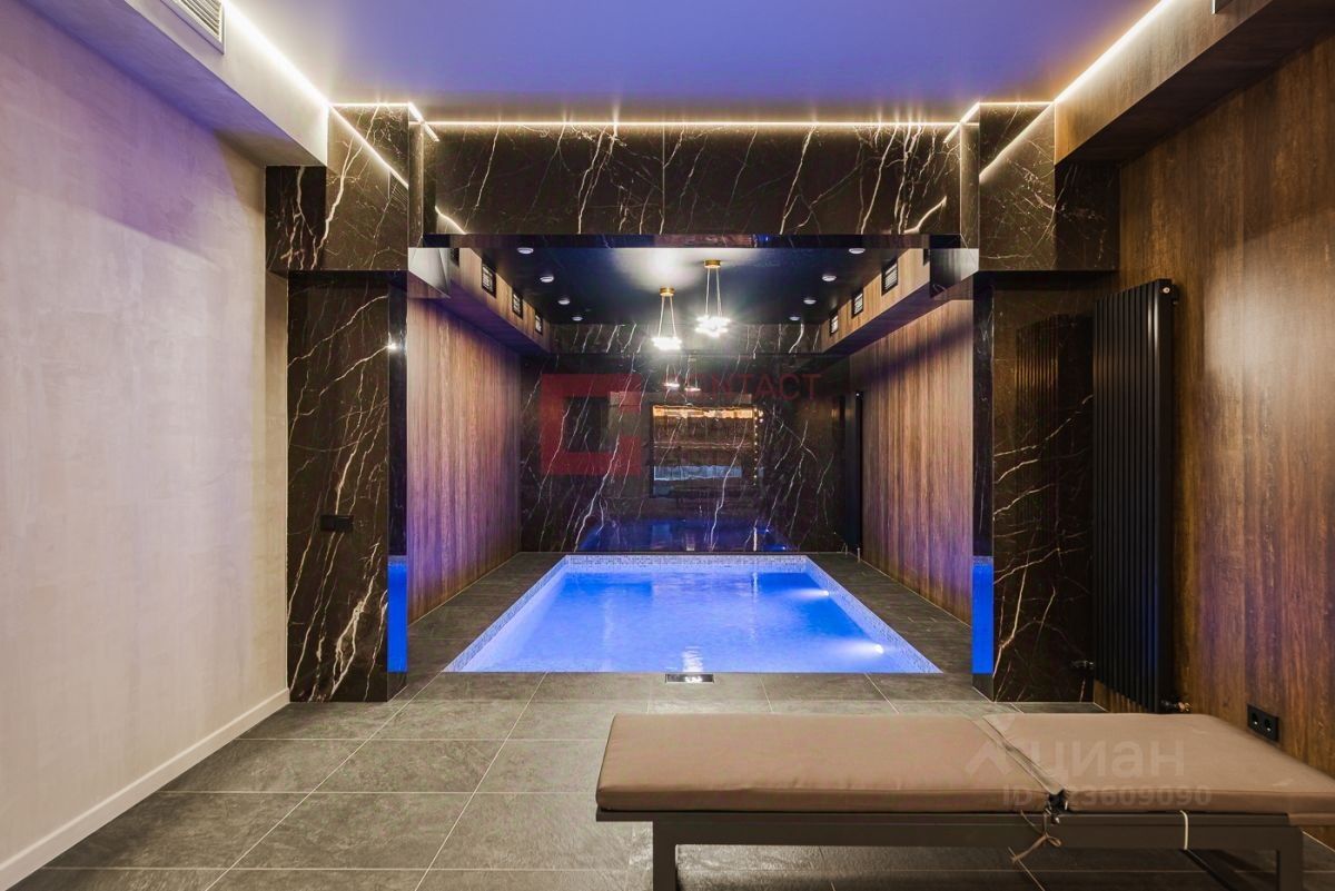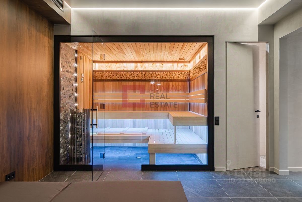 ID 542025. КП Резиденция рублево. Новый дом для большой семьи с современным ремонтом. Полностью меблирован и готов к проживанию. В доме никто не жил. Дом имеет хорошее расположение в поселке, выход в парк. Планировка дома: Цоколь: гараж на одно машиноместо, spa-зона, комната отдыха, мини кухня, барная стойка, сауна, душевая, санузел, бассейн. блок для персонала, две гардеробные комнаты, щитовая, санузел. 1 этаж: холл, кухня, столовая с выходом на террасу, гостиная с камином и выходом на балкон, домашний кинотеатр, комната, кабинет, санузел. 2 этаж: детская комната, гардеробная, три спальные комнаты с ванными комнатами, выход на балкон, мастер-спальня с гардеробной и ванной комнатой. 3 этаж: комната свободного назначения, тренажерный зал, санузел, кладовая, выход на эксплуатируемую кровлю.