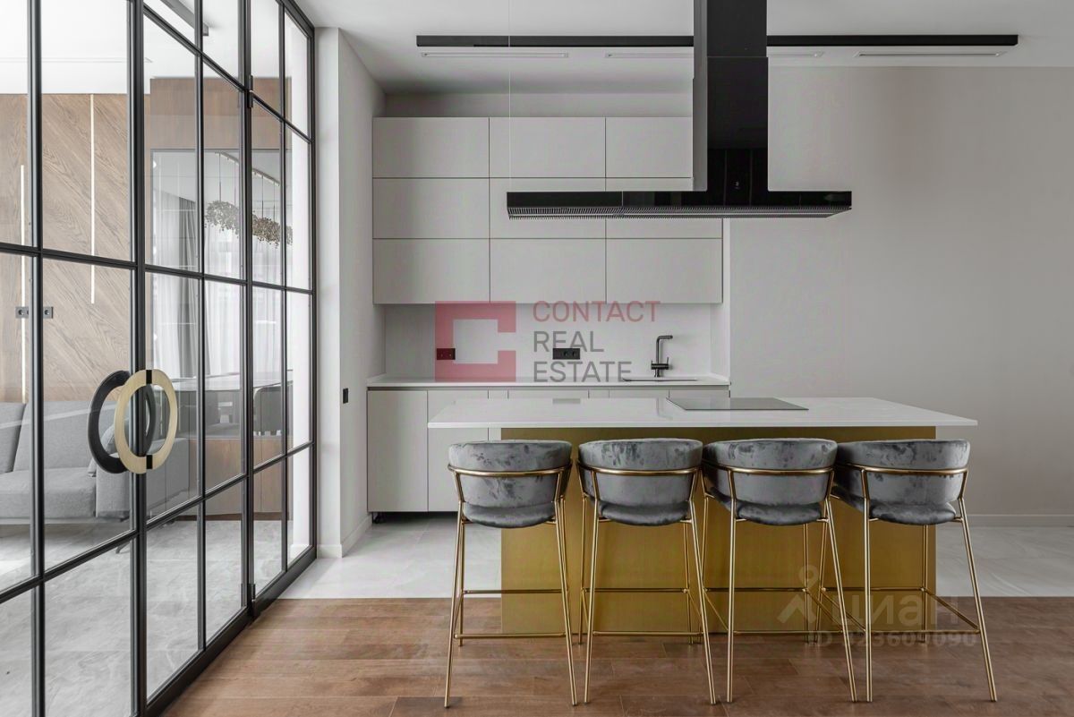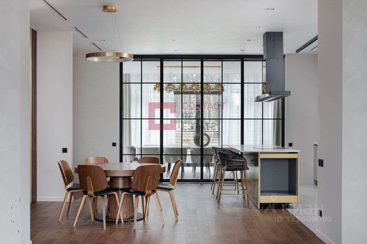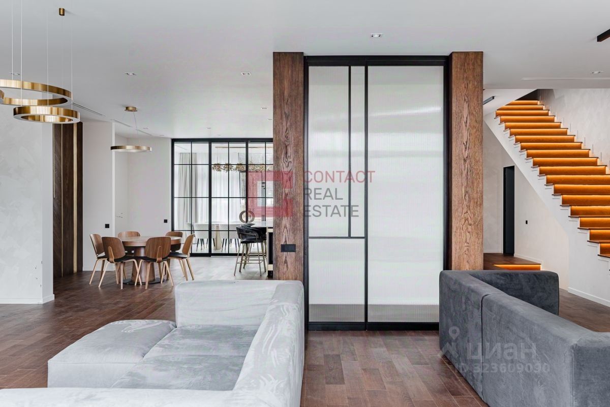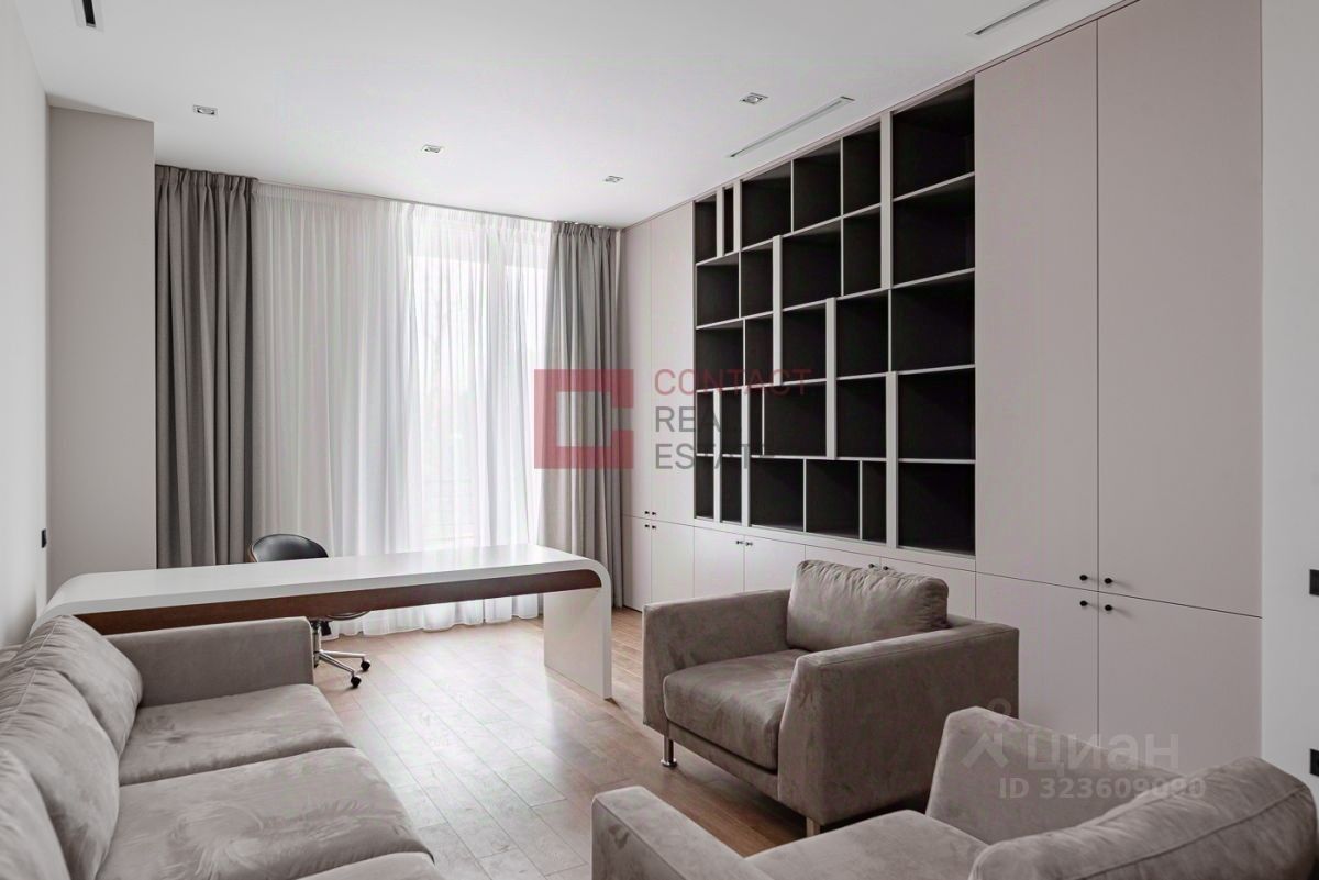 ID 542025. КП Резиденция рублево. Новый дом для большой семьи с современным ремонтом. Полностью меблирован и готов к проживанию. В доме никто не жил. Дом имеет хорошее расположение в поселке, выход в парк. Планировка дома: Цоколь: гараж на одно машиноместо, spa-зона, комната отдыха, мини кухня, барная стойка, сауна, душевая, санузел, бассейн. блок для персонала, две гардеробные комнаты, щитовая, санузел. 1 этаж: холл, кухня, столовая с выходом на террасу, гостиная с камином и выходом на балкон, домашний кинотеатр, комната, кабинет, санузел. 2 этаж: детская комната, гардеробная, три спальные комнаты с ванными комнатами, выход на балкон, мастер-спальня с гардеробной и ванной комнатой. 3 этаж: комната свободного назначения, тренажерный зал, санузел, кладовая, выход на эксплуатируемую кровлю.