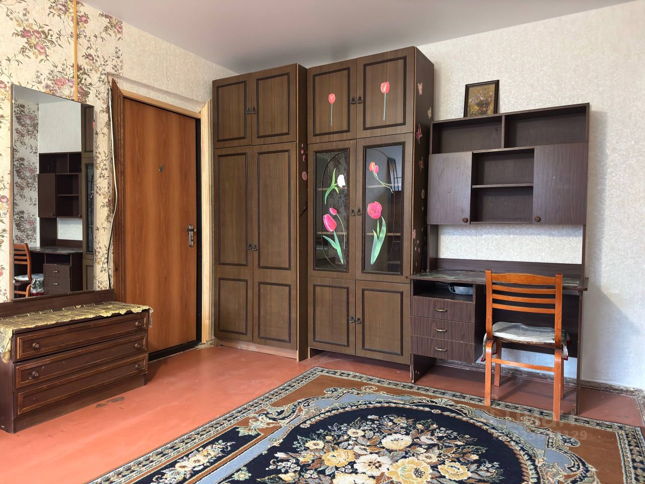 Одна из самых больших комнат в квартире 18 кв.м. Ремонт - косметический. Окна - стеклопакеты.