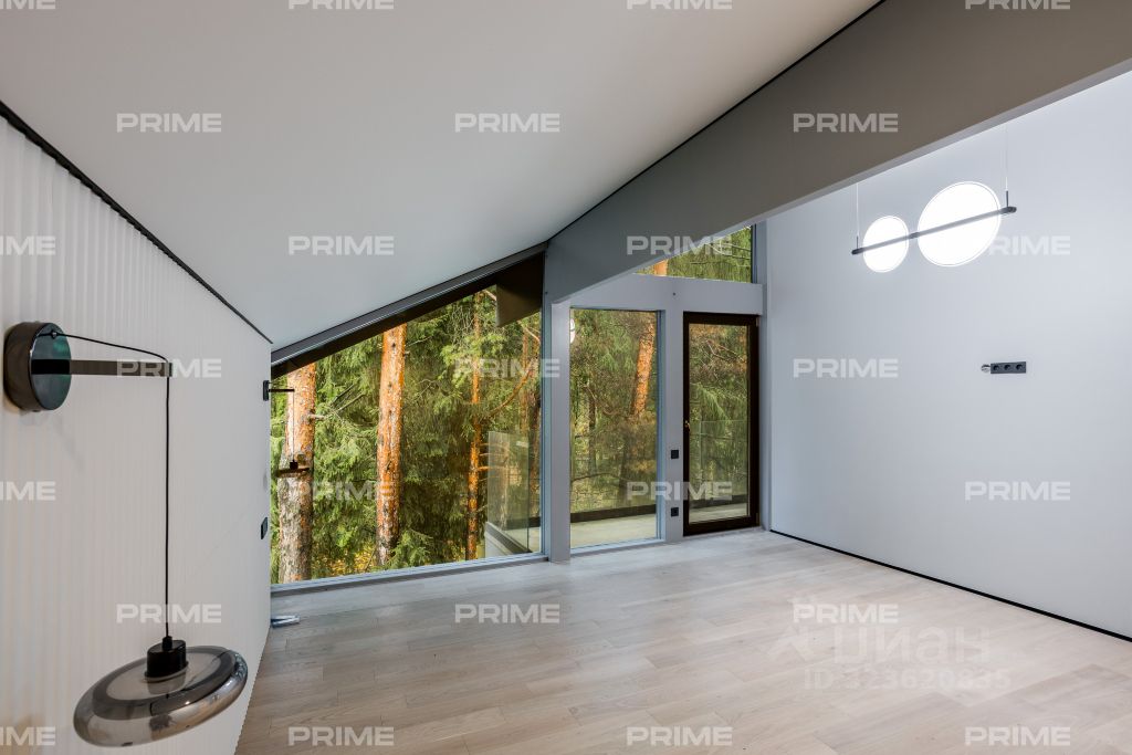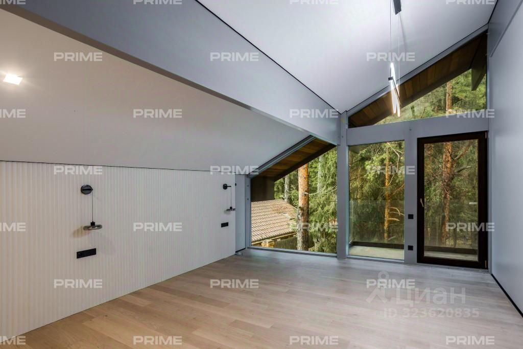 2-й этаж: Мастер-спальня, две спальни с общим балконом и отдельным сан узлом, гардеробная и общая зона со вторым светом и панорамным видом на собственный сосновый лес.