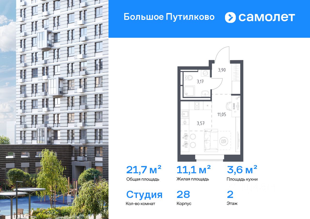Строим кварталы для жизни с заботой о будущем. Предлагается квартира студия комфорт-класса 21,69 кв.м в корпусе 28 на 2 этаже, в ЖК ''Большое Путилково'' Квартира с чистовой отделкой. Доступность дополнительных опций уточняйте у застройщика.