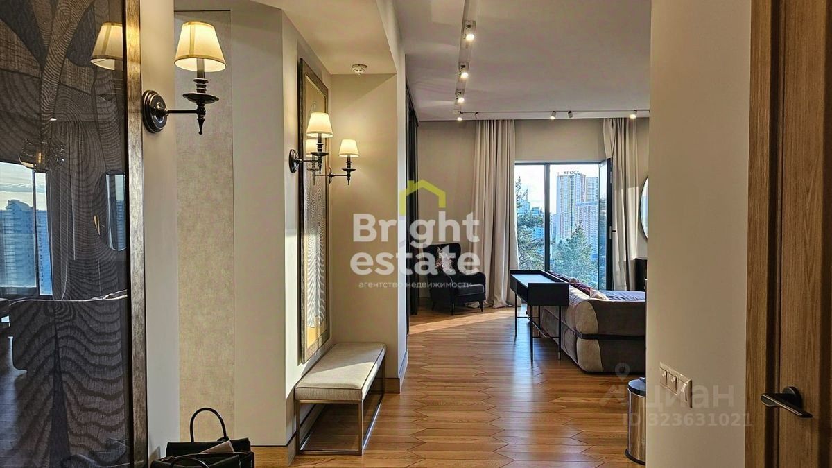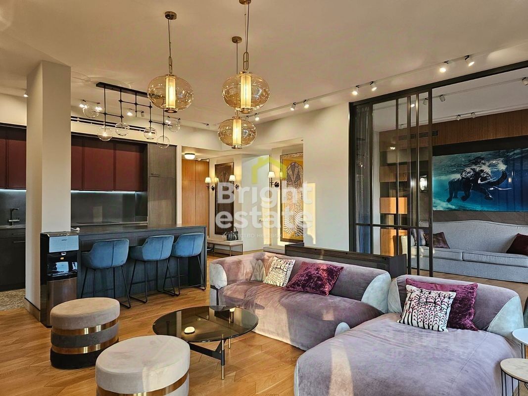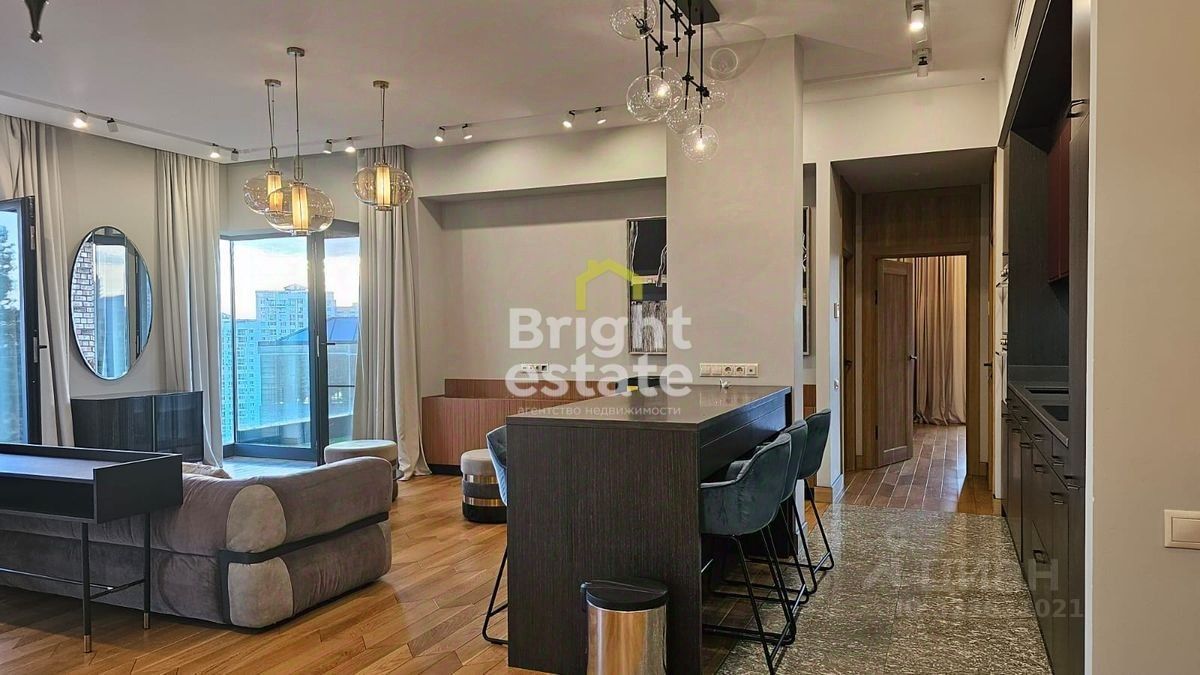 Интерьеры выполнены в современном дизайнерском стиле с использованием качественных материалов и продуманной эргономикой пространства. Просторная кухня-гостиная с выходом на террасу станет центром домашней жизни — идеальным местом для отдыха и тёплых встреч. Две спальни и кабинет (который можно использовать как третью спальню) создают атмосферу комфорта и уединения. В квартире также предусмотрены две гардеробные, две ванные комнаты, постирочная и машиноместо в подземном паркинге.