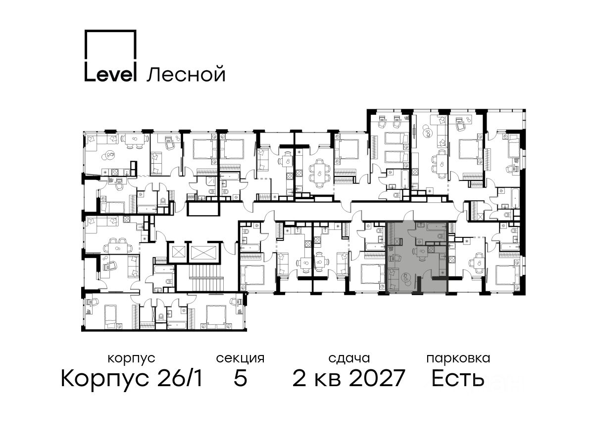 В районе, утопающем в густой зелени лесов, многочисленных парков и скверов, продаётся студия площадью 27.50 кв.м с отделкой white box. Квартира расположена на 13 этаже в жилом комплексе комфорт-класса Level Лесной (компания Level Group/Левел групп).