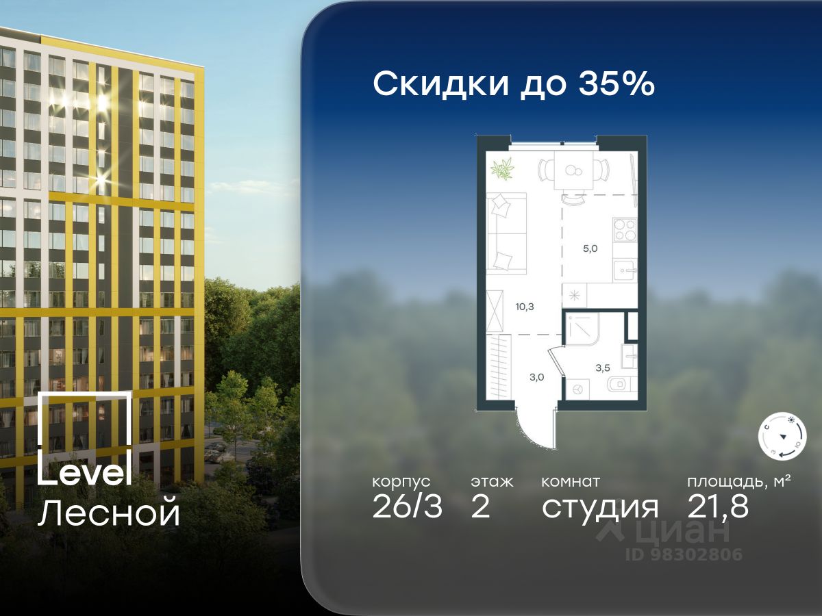 В районе, утопающем в густой зелени лесов, многочисленных парков и скверов, продаётся студия площадью 21.80 кв.м без отделки. Квартира расположена на 2 этаже в жилом комплексе комфорт-класса Level Лесной (компания Level Group/Левел групп).