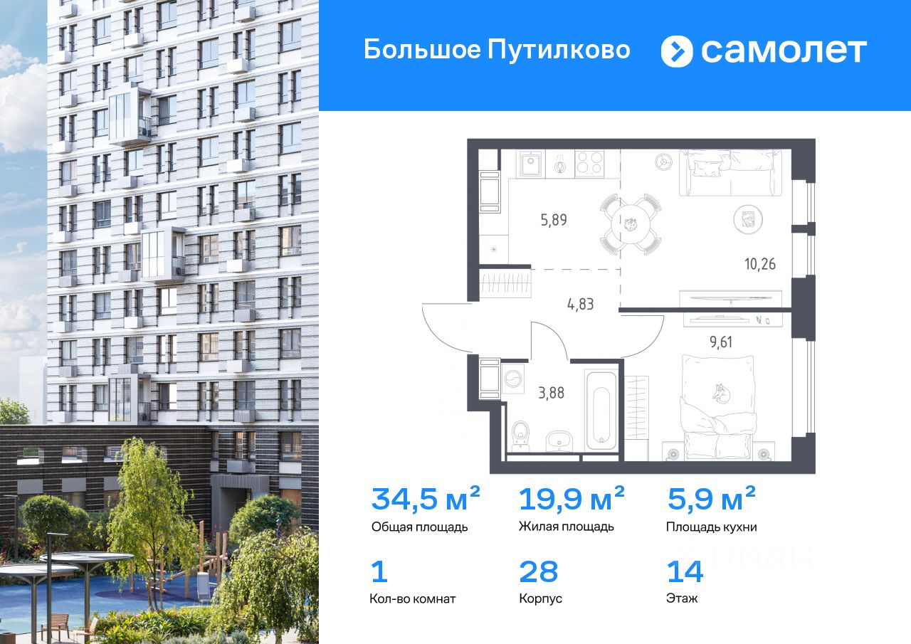 Строим кварталы для жизни с заботой о будущем. Предлагается 1-комнатная квартира комфорт-класса 34,47 кв.м в корпусе 28 на 14 этаже, в ЖК ''Большое Путилково'' Квартира без отделки. Доступность опции ''отделка'' и возможность комплектации мебелью и декором уточняйте у застройщика.