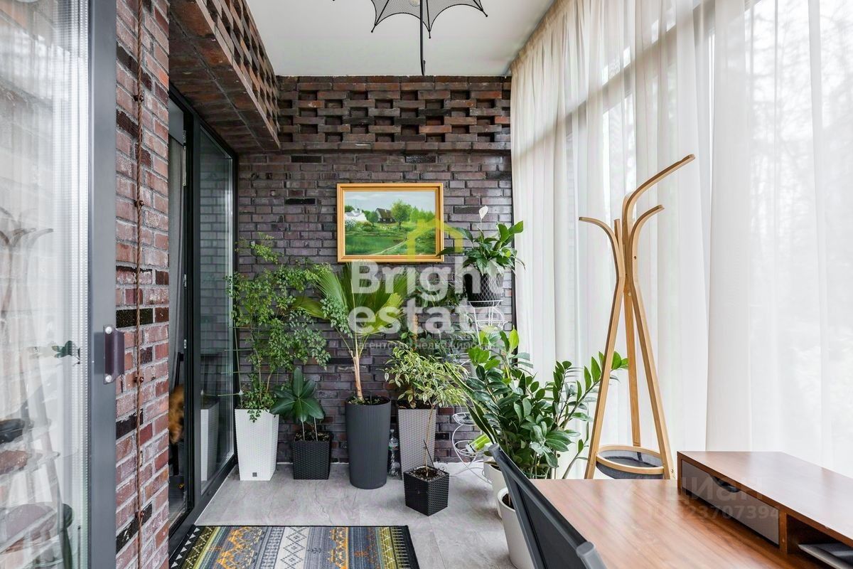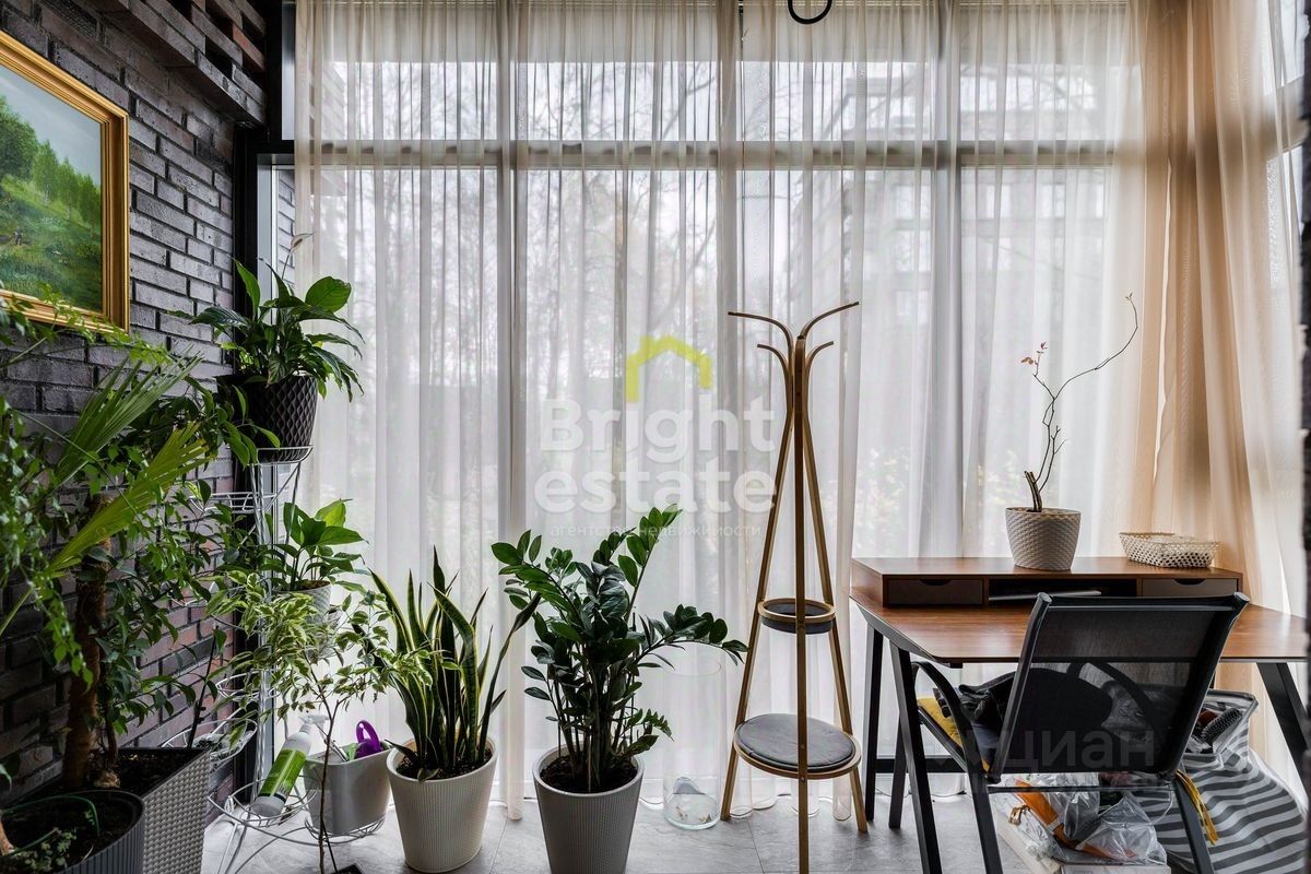 Застекленная лоджия с панорамными окнами и выходом на балкон превращена в уютное пространство для отдыха или работы — здесь особенно приятно встречать утро и наслаждаться видом на зелень двора.