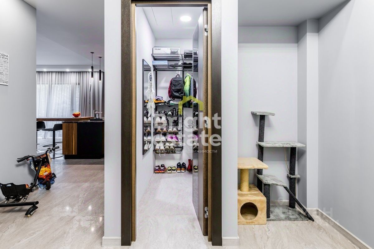 Квартира расположена на первом этаже и выходит окнами в тихий, зеленый внутренний двор. Интерьер оформлен в современном стиле — отделка полностью завершена, установлена мебель и бытовая техника премиальных брендов. Каждая деталь продумана до мелочей, создавая атмосферу уюта и гармонии.