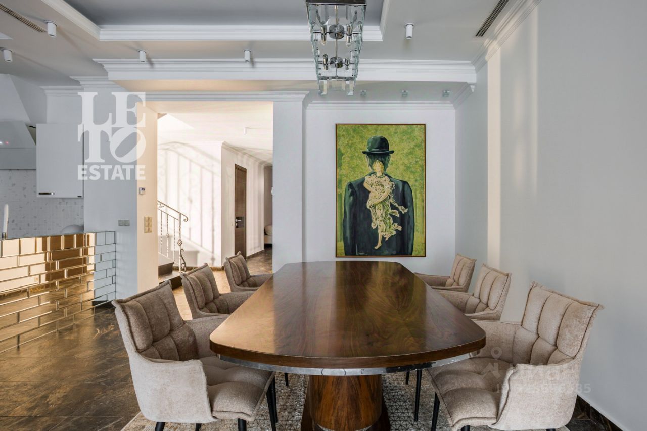 Арт. 77553255 Вашему вниманию представлен готовый таунхаус площадью 400 кв. м на участке площадью 4,5 сотки. Объект находится в охраняемом коттеджном поселке ''Прозорово'', расположенном в 11 км от МКАД по Новорижскому шоссе. Таунхаус полностью готов к проживанию, есть вся необходимая встроенная техника и мебель. Пространство четко зонировано. На первом этаже функциональная планировка, единое светлое пространство, объединяющее функциональную кухню, гостиную и просторную столовую. На втором этаже расположены комфортабельные спальни. На полноценном третьем этаже находится зона отдыха: спортзал, сауна, джакузи, спальня, санузел, душевая. Все коммуникации - центральные: газоснабжение, электричество, водопровод и канализация. Организована котельная, установлено оборудование.