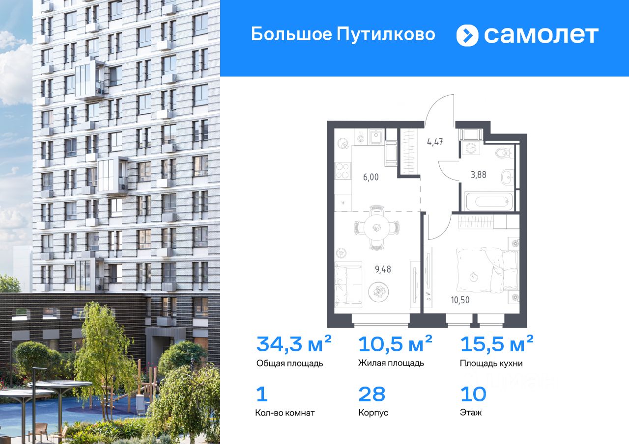 Строим кварталы для жизни с заботой о будущем. Предлагается 1-комнатная квартира комфорт-класса 34,33 кв.м в корпусе 28 на 10 этаже, в ЖК ''Большое Путилково'' Квартира с чистовой отделкой. Доступность дополнительных опций уточняйте у застройщика.