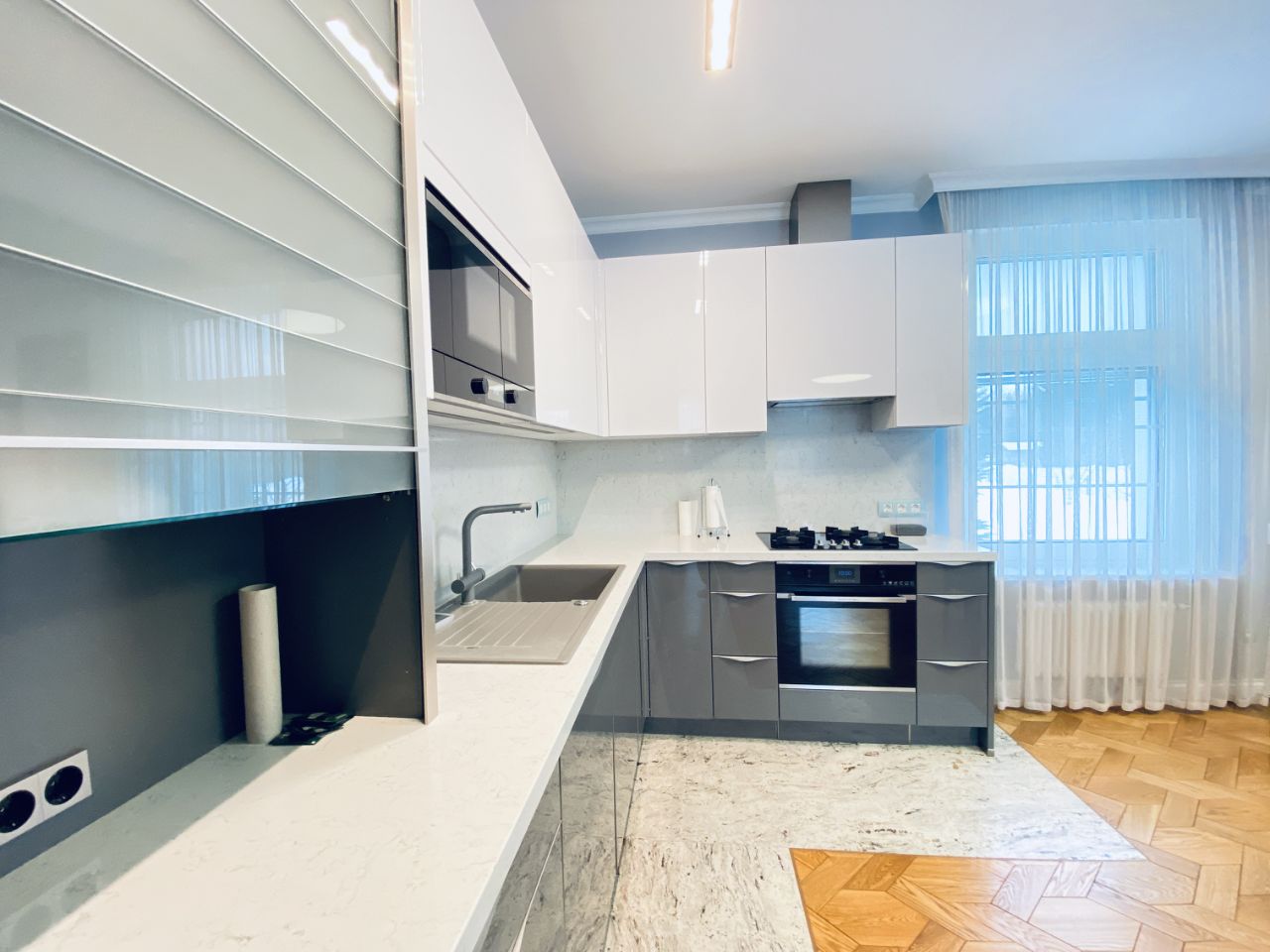 Уютный новый дом к КП Петровский. Ремонт свежий, сделан в серо-голубых сдержанный тонах. Полы, лестница - массив лиственницы, плитка, ступени дома мрамор и гранит. Тихий закрытый респектабельный посёлок, рядом река, фитнес клуб на берегу. Парк. Очень удобная транспортная доступность. 15 мин до Москва-сити. Своя калитка из посёлка в школу, детский садик.