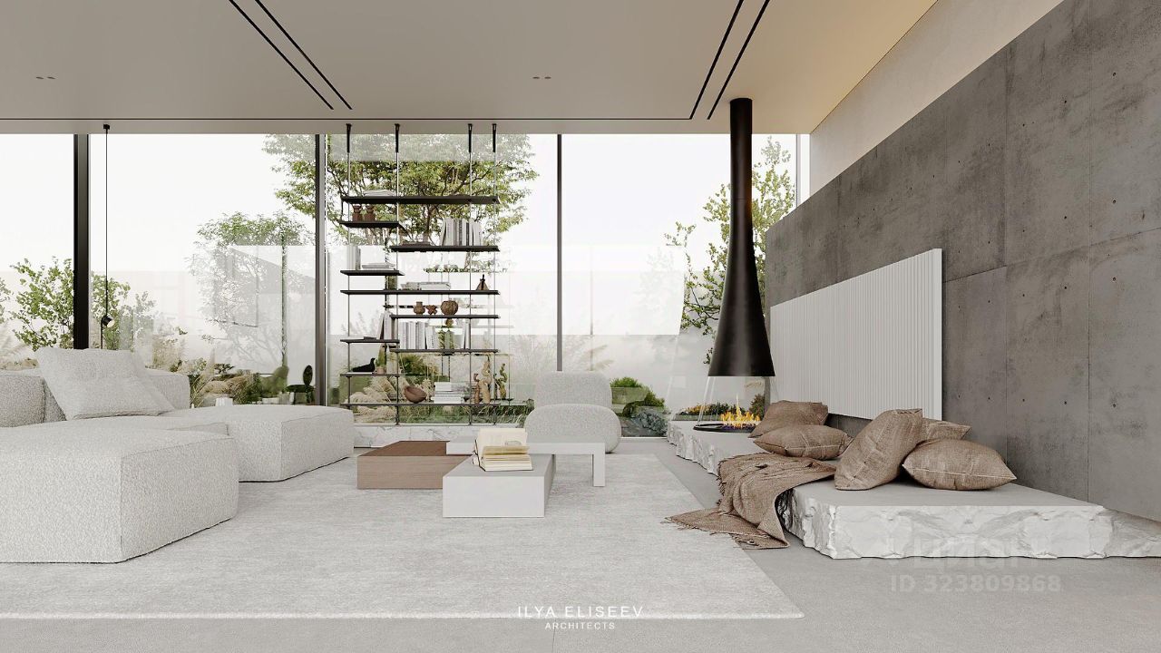 1 этаж кухня-столовая-гостиная, терраса, спортзал, сауна, душевая, гардероб, гостевой санузел, кухня для повара, прачечная, зона для персонала (спальня, санузел), гараж для техники.