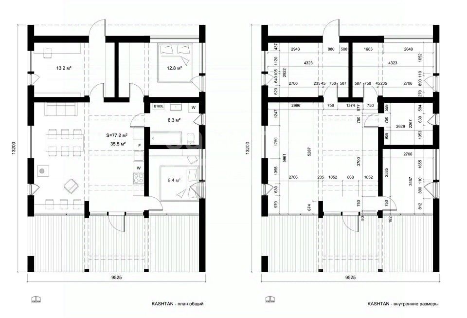 О ДОМЕ: - одноэтажный дом 120 м2 (дом 80 м2+ терраса 40 м2)., - высокие потолки до 3.28 метров - материал стен -дерево хвойных пород (сосна/ель), дом очень тёплый, тихий и экологически чистый+ утеплитель фирмы КNАUF - фундамент утеплённая железобетонная лента + утеплённая плита + водяной тёплый пол - крыша утеплённая с изоляцией - в доме большая и светлая кухня-гостиная 36 м2, две спальни 13,2 м2 и 9,4 м2 и детская/библиотека/кабинет 12,8 м2. А еще просторный санузел и уютная веранда.