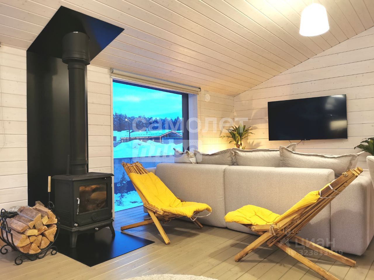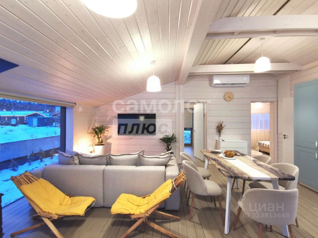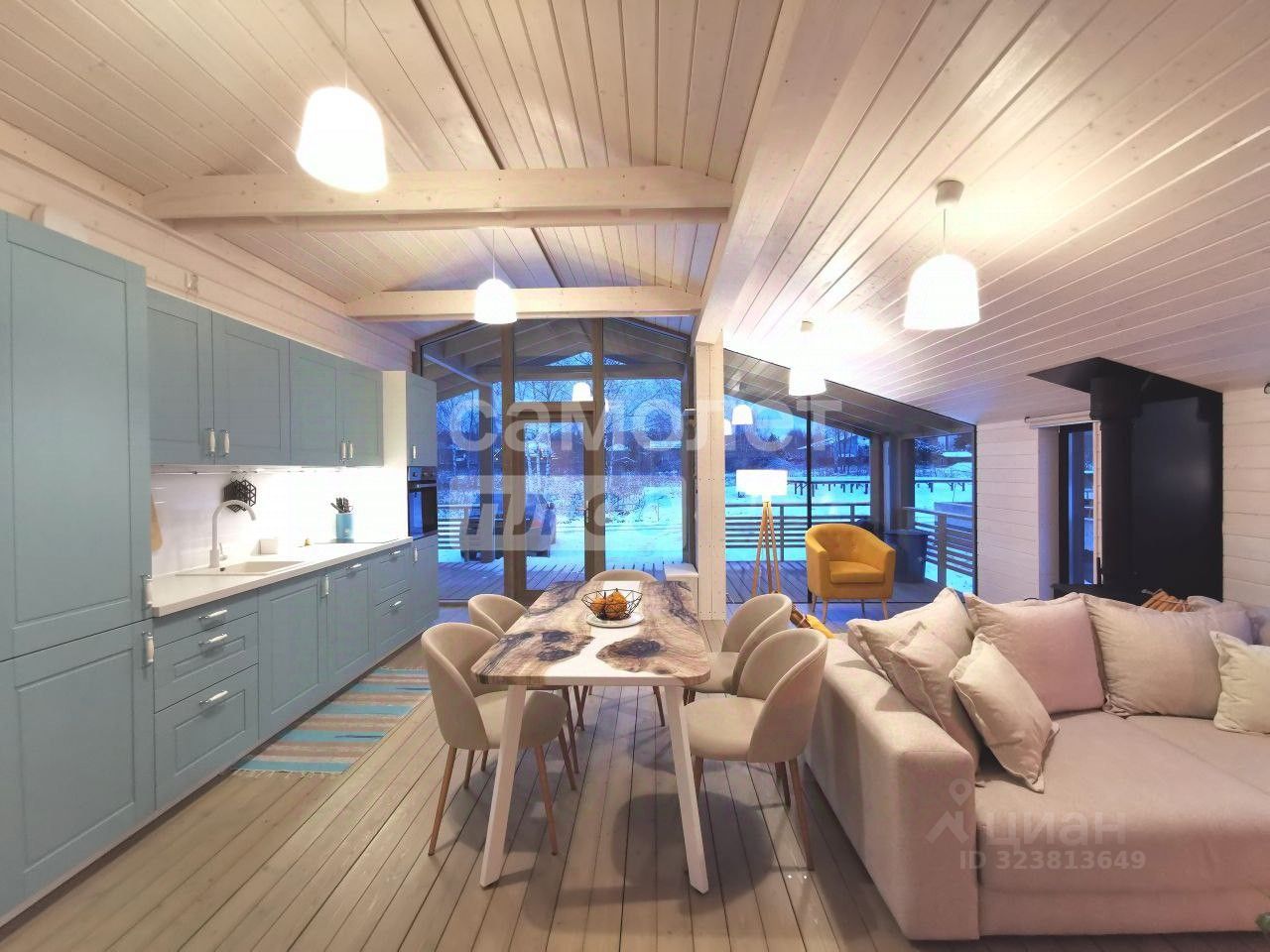 О ДОМЕ: - одноэтажный дом 120 м2 (дом 80 м2+ терраса 40 м2)., - высокие потолки до 3.28 метров - материал стен -дерево хвойных пород (сосна/ель), дом очень тёплый, тихий и экологически чистый+ утеплитель фирмы КNАUF - фундамент утеплённая железобетонная лента + утеплённая плита + водяной тёплый пол - крыша утеплённая с изоляцией - в доме большая и светлая кухня-гостиная 36 м2, две спальни 13,2 м2 и 9,4 м2 и детская/библиотека/кабинет 12,8 м2. А еще просторный санузел и уютная веранда. - в гостиной и всех комнатах панорамные окна в пол - отопление - электрические конвекторы и печь-камин, тёплый пол - на полу - натуральное дерево - центральная канализация - вода - центральное водоснабжение - снаружи отделка натуральная деревянная доска (сосна/ель) - дом меблирован и оснащён всей необходимой бытовой техникой.