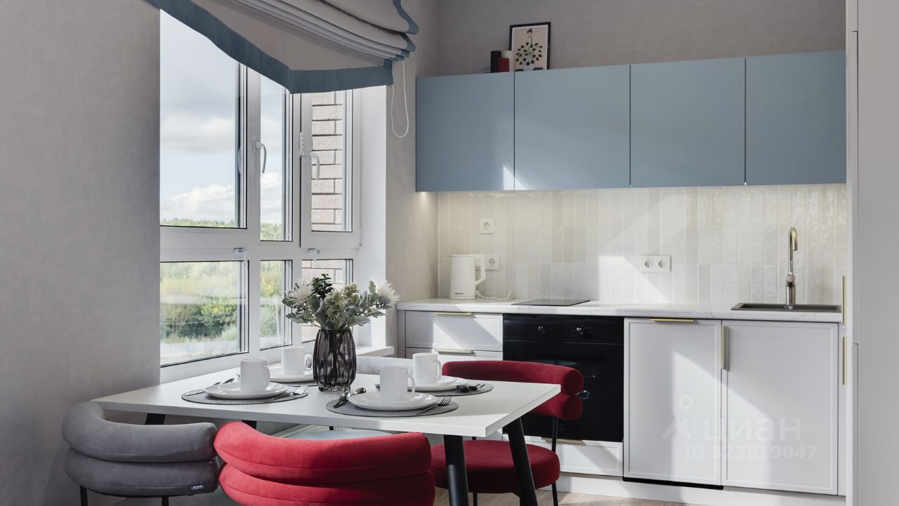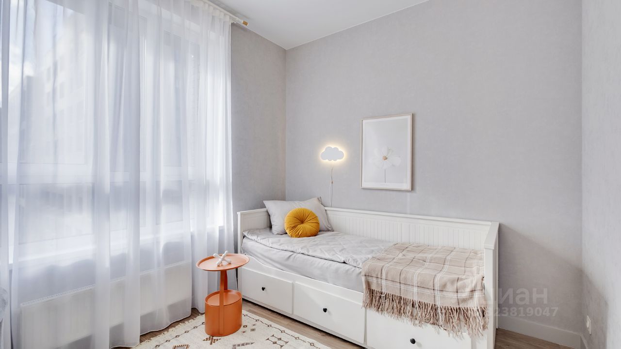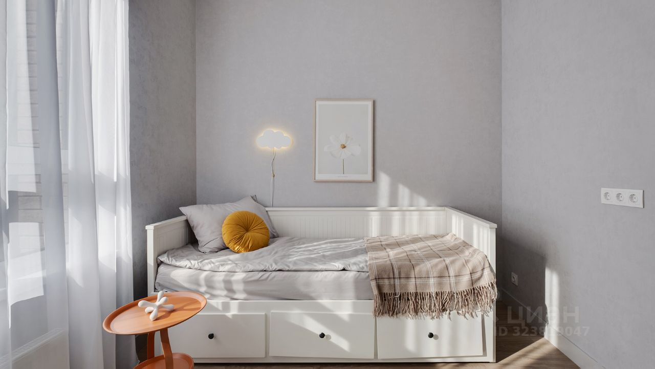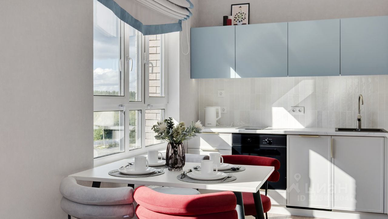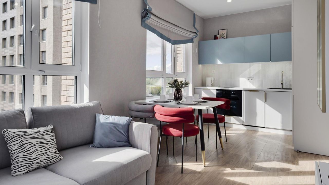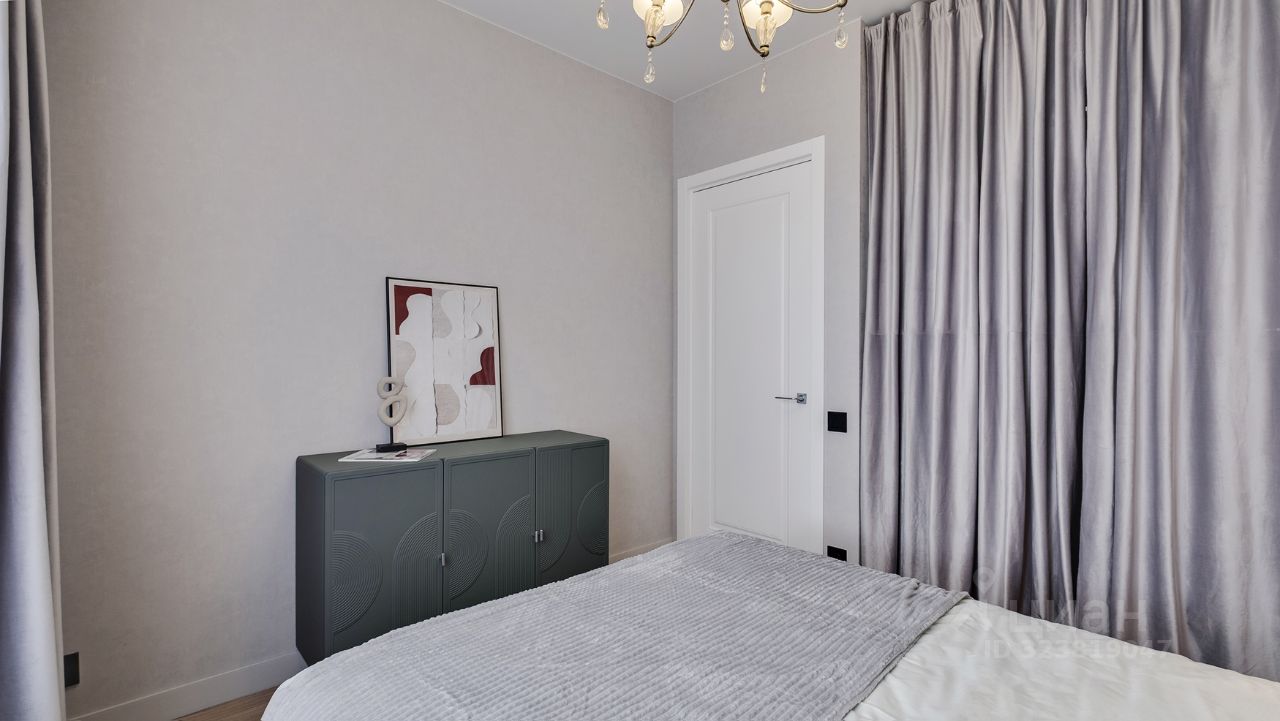 Кухня-гостиная с 3-мя окнами во внутренний двор Спальня с полноценной двуспальной кроватью, комодом и гардеробои Детская (или кабинет) со встроенной мебелью Два санузла: с душевой кабиной и с ванной