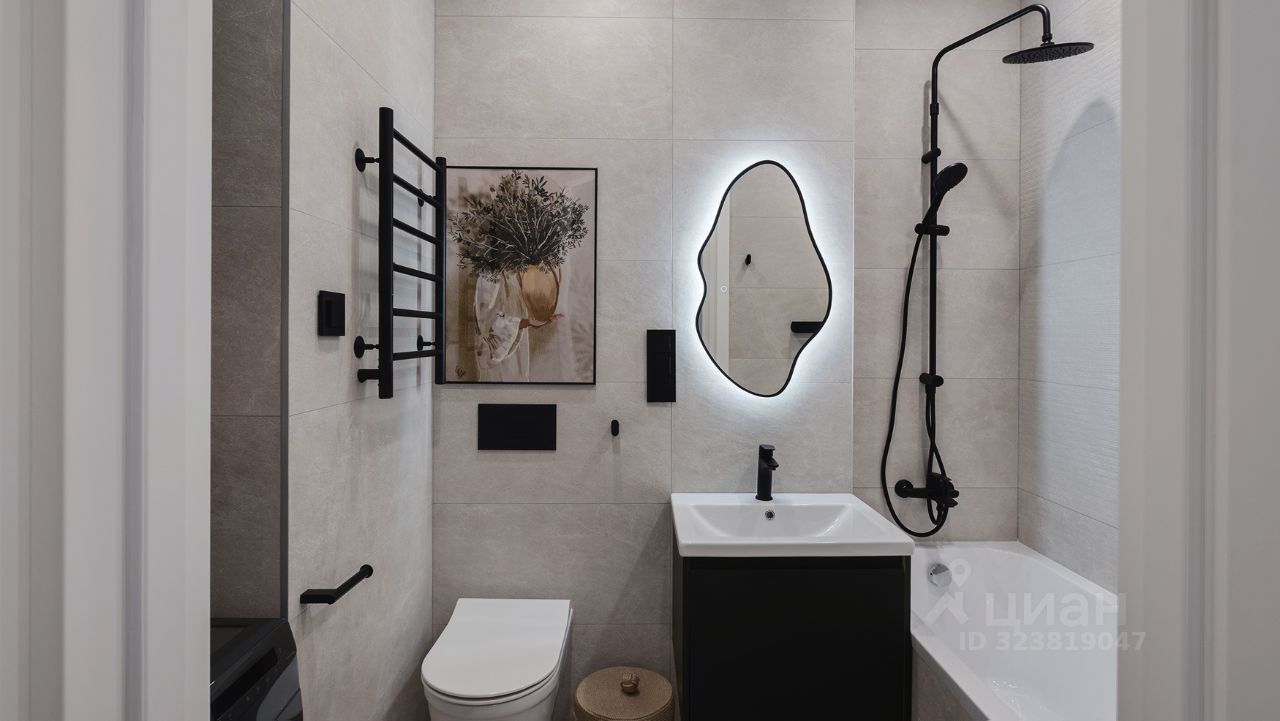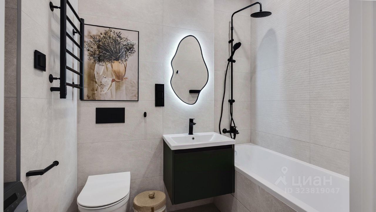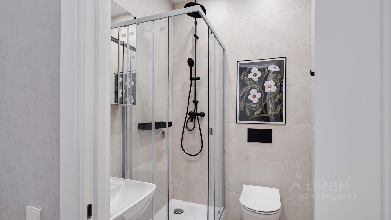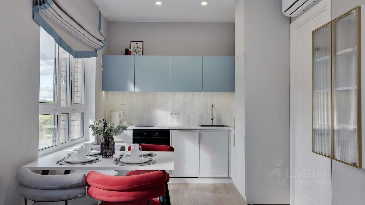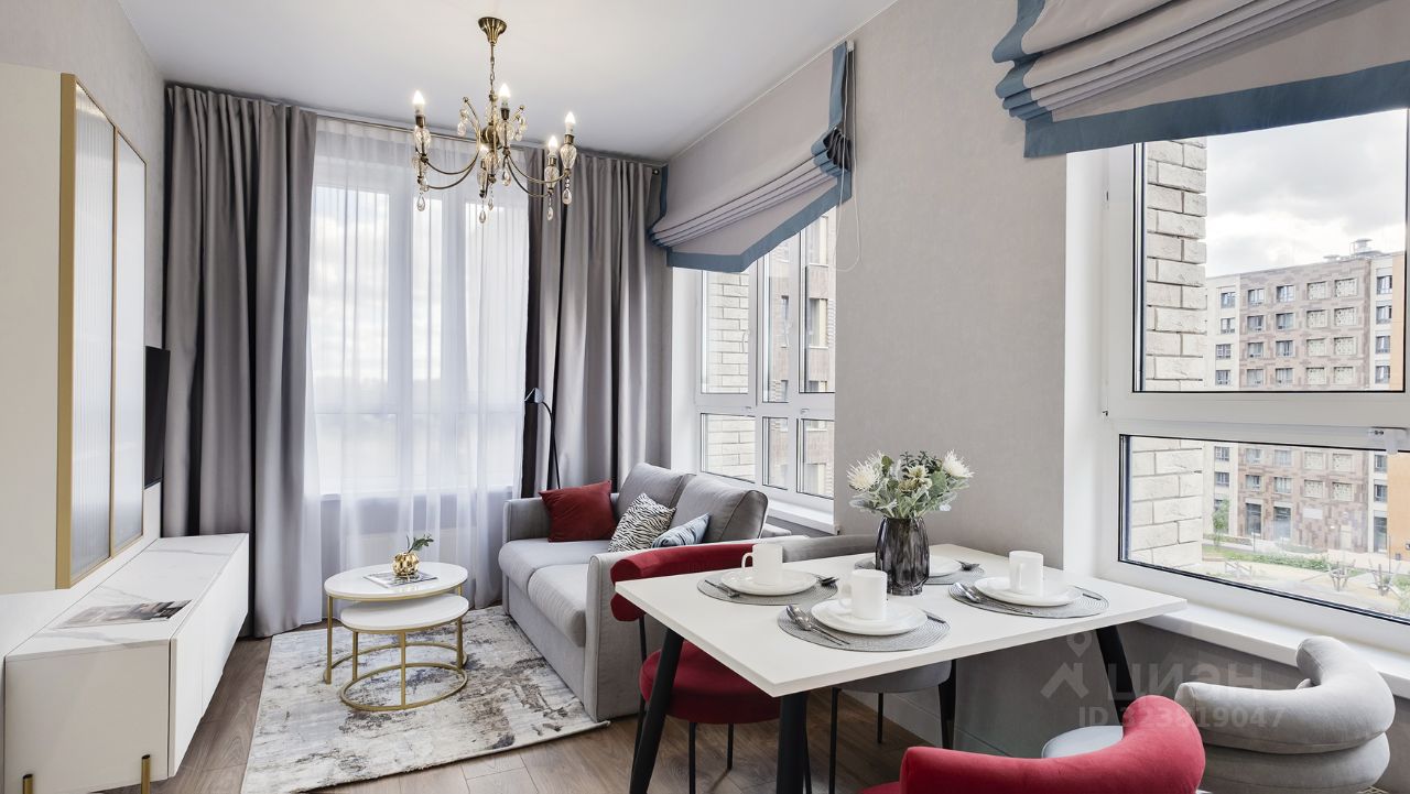 Кухня-гостиная с 3-мя окнами во внутренний двор Спальня с полноценной двуспальной кроватью, комодом и гардеробои Детская (или кабинет) со встроенной мебелью Два санузла: с душевой кабиной и с ванной