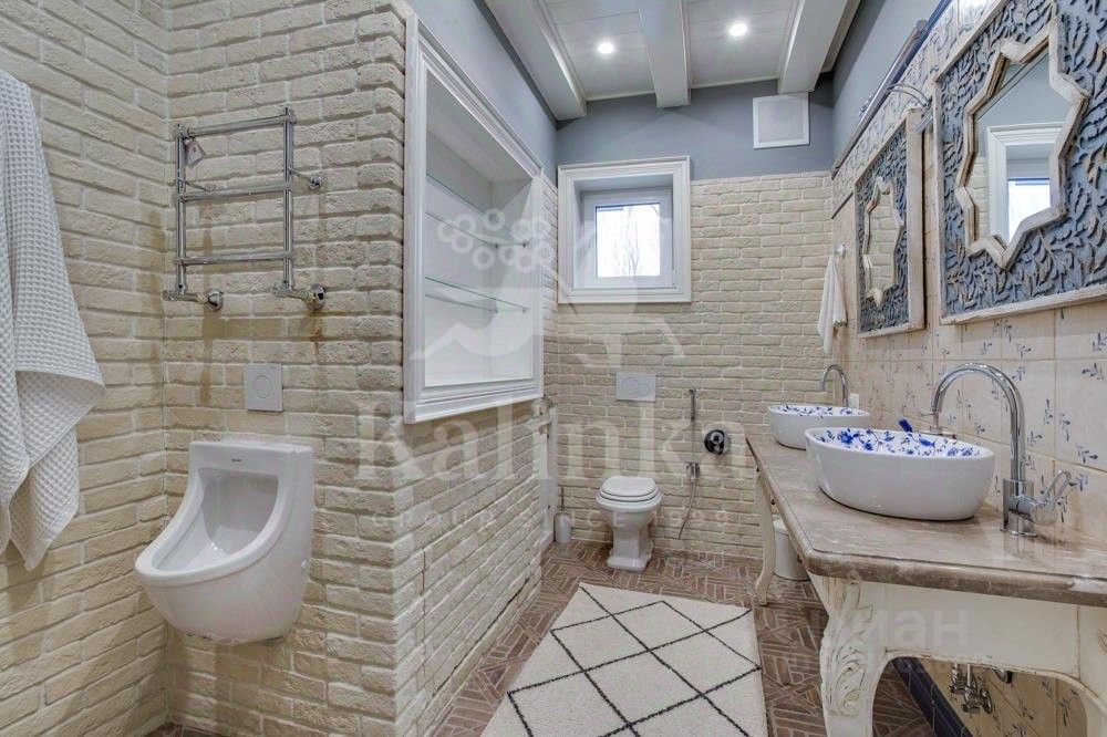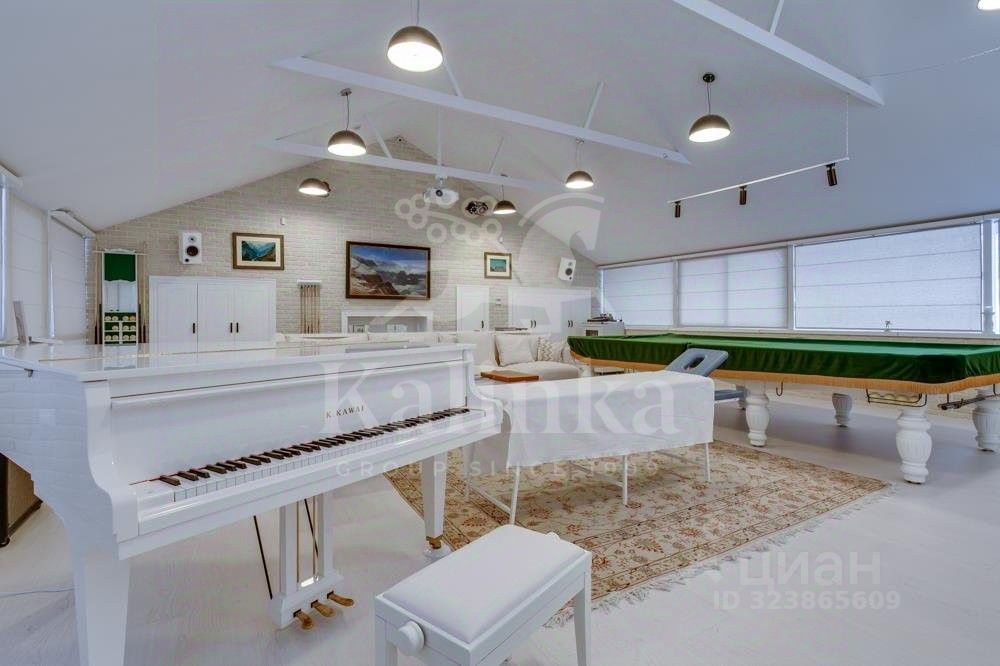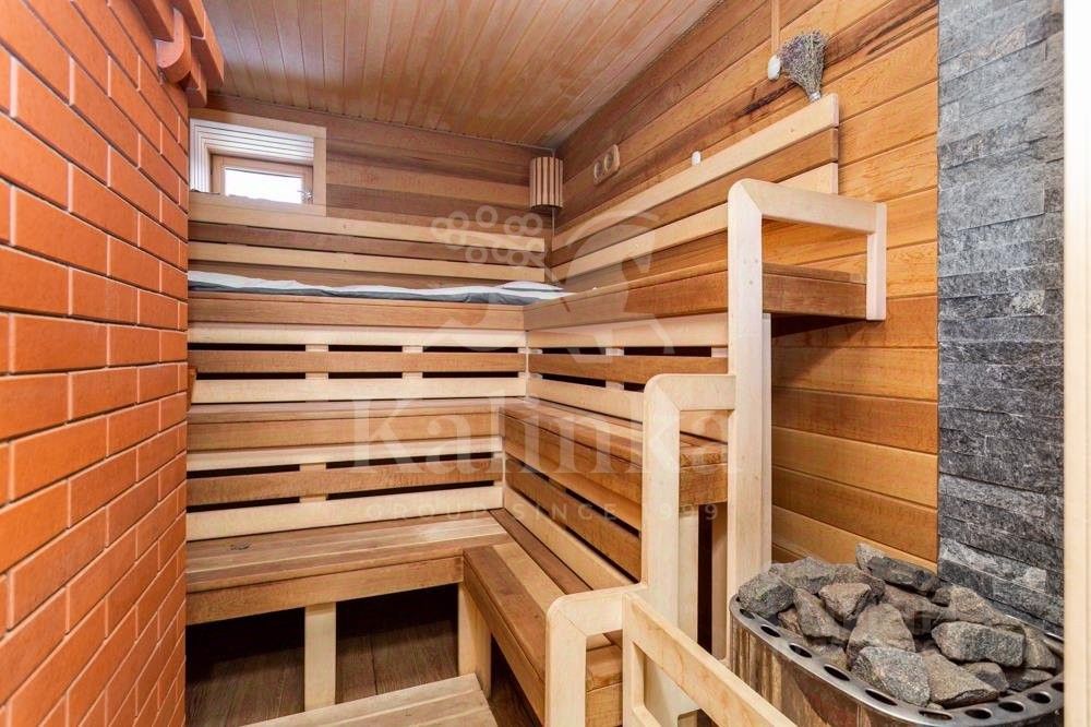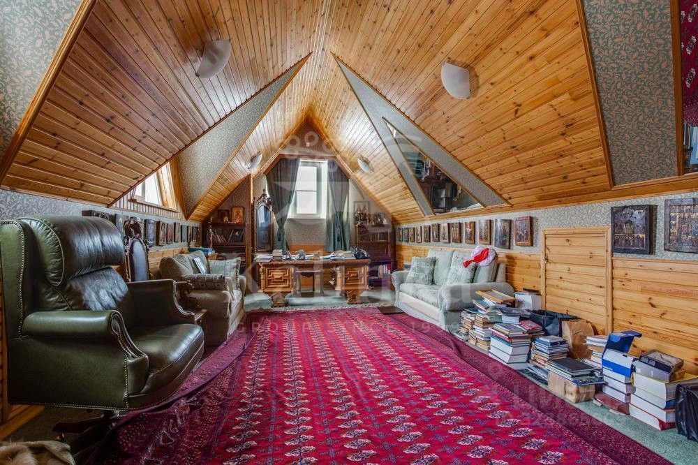 Предлагается дом в тихом месте с видом на озера и лес в пешей доступности. Планировка Цоколь: построчная, оружейная. 1 этаж: прихожая, гостиная, кухня, зимний сад, санузел и душевая. 2 этаж: три спальни с балконом, санузел. Мансарда: кабинет и зона отдыха. На участке отдельно расположен новый трехуровневый дом с баней, гараж на два машино-места, блок для персонала. Планировка (дом-баня 500 кв.м) Первый этаж: прихожая, санузел, зона отдыха, баня русская, бассейн, душевая. Кухня, кинотеатр, бильярд, караоке. Второй этаж: две спальни со своими гардеробными, санузел. Третий этаж: спальня, гардеробная, санузел, печка 17 века.
