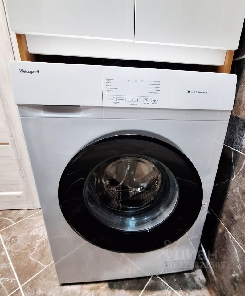 Новый большой холодильник, плита с духовкой, вытяжка, стиральная машинка.