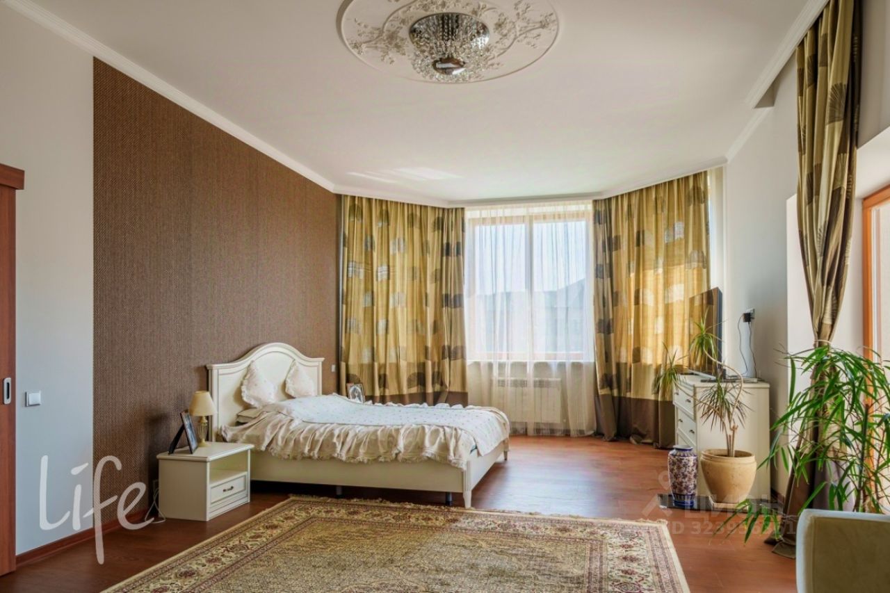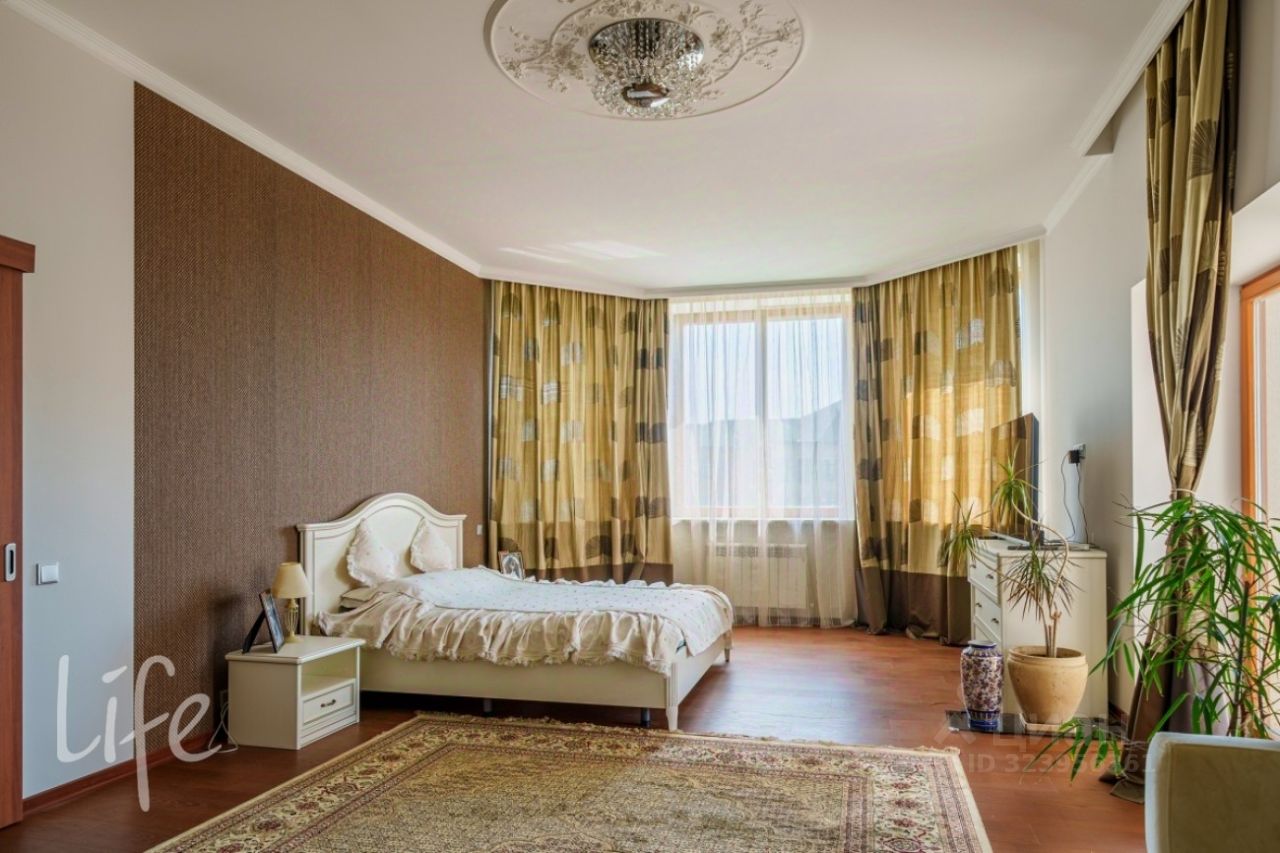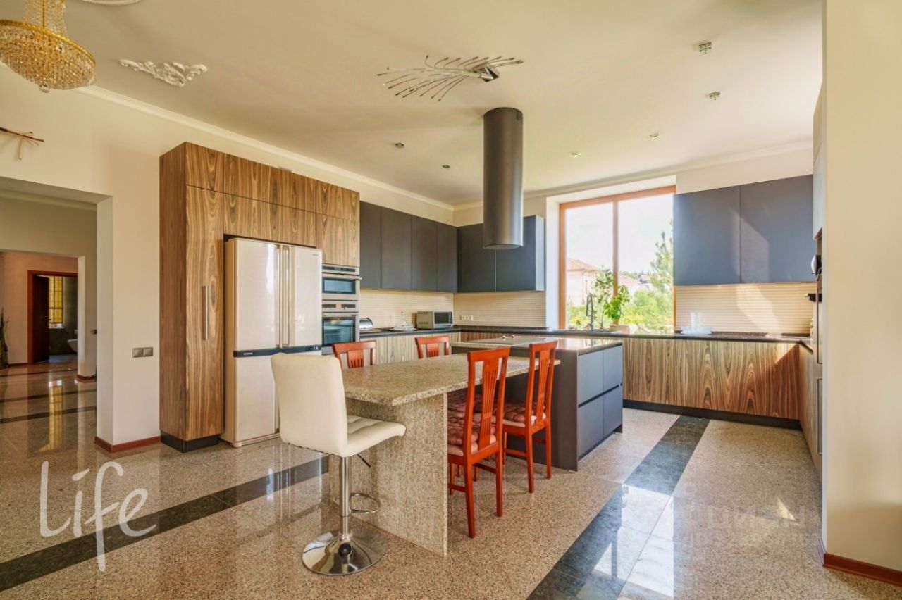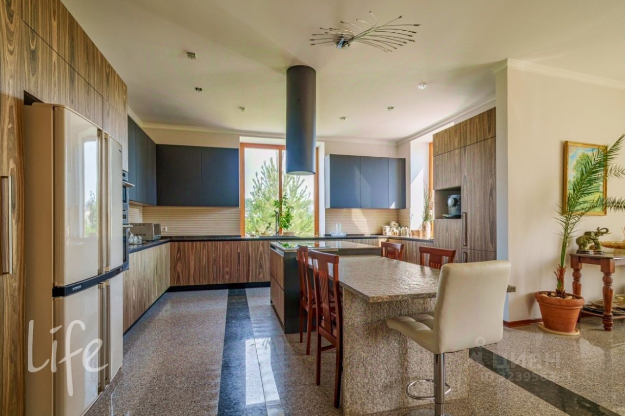 Охраняемый поселок. Уютный жилой дом, полностью под ключ, меблирован и оборудован всей необходимой бытовой техникой. Интерьер выполнен в современном классическом стиле, со вкусом подобрана мебель и аксессуары, предметы быта. Гостиную украшает дровяной камин. Комфортная планировка с пятью спальнями, гостиной подойдет большой семье. Есть квартира для персонала. Все центральные коммуникации. Поселок строго охраняемый.