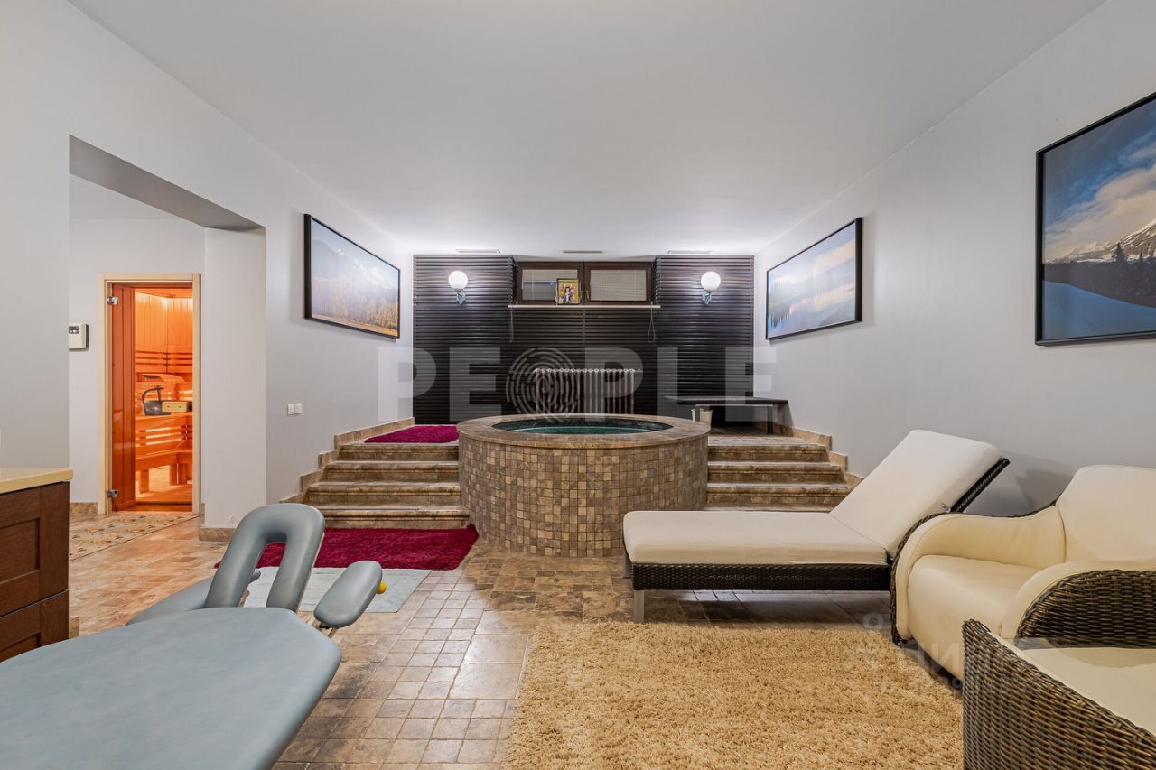 МИНУС ПЕРВЫЙ УРОВЕНЬ: Есть отдельный вход в дом. - кинозал - спортзал - 2 с/у - сауна - бассейн-купель - душевая - прачечная - кладовая - комната для персонала - кухня - котельная