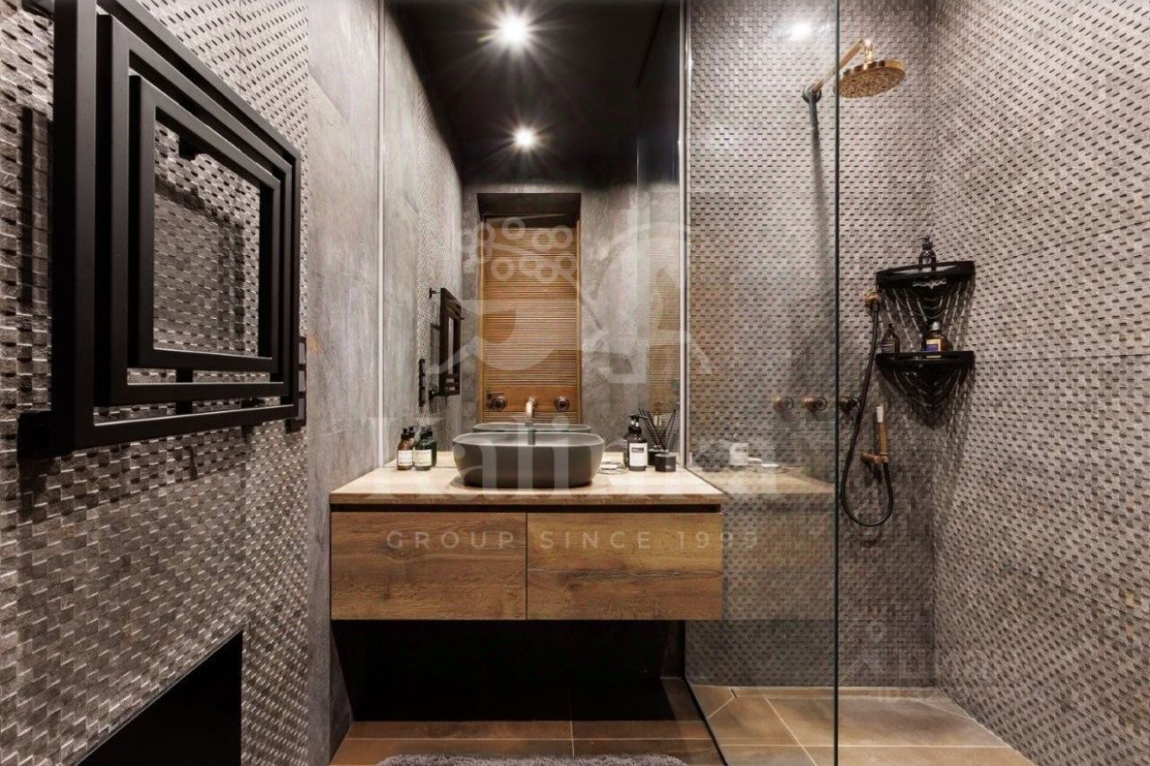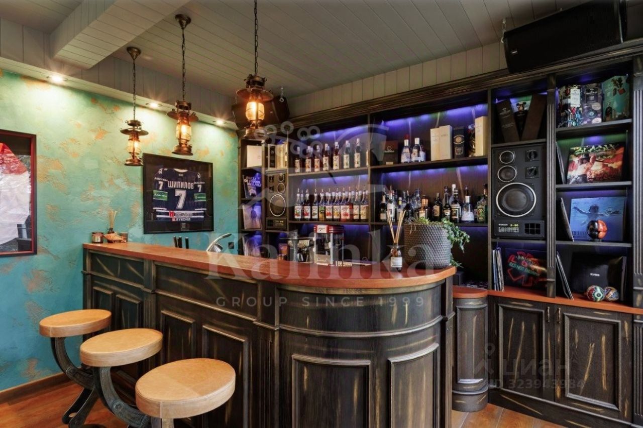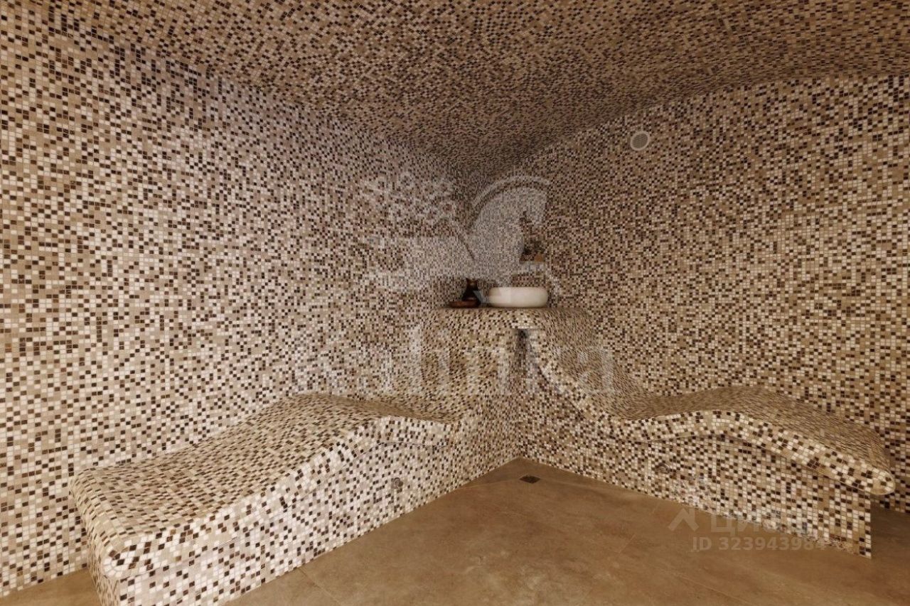 В планировке предусмотрено: 7 спален с санузлами, просторный холл, кухня-столовая, гостиная с камином, стильная застекленная терраса с баром и проектором, гараж с мастерской, тренажерный зал и СПА-зона с бассейном, хаммамом и зоной отдыха.