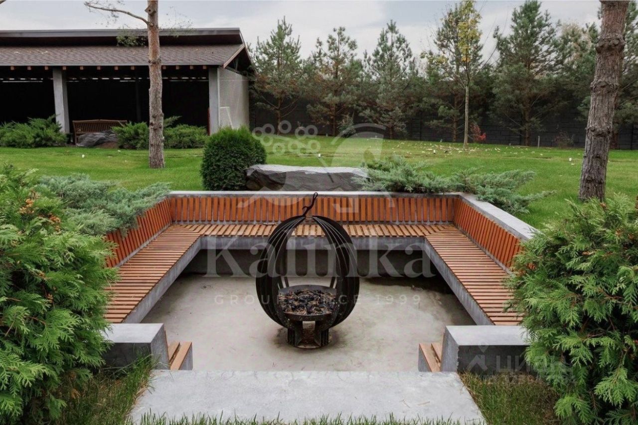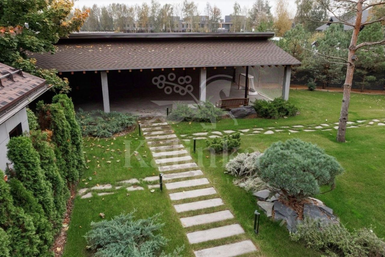 На участке расположен основной дом, зона барбекю, фаерпит, бельчатник и спортивная площадка, которая превращается в крытый каток в зимнее время года. Выполнен эксклюзивный ландшафтный дизайн, что позволяет наслаждаться зеленью как летом, так и зимой.