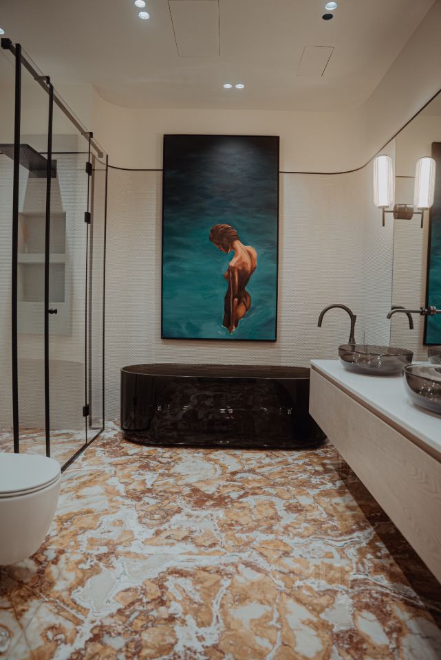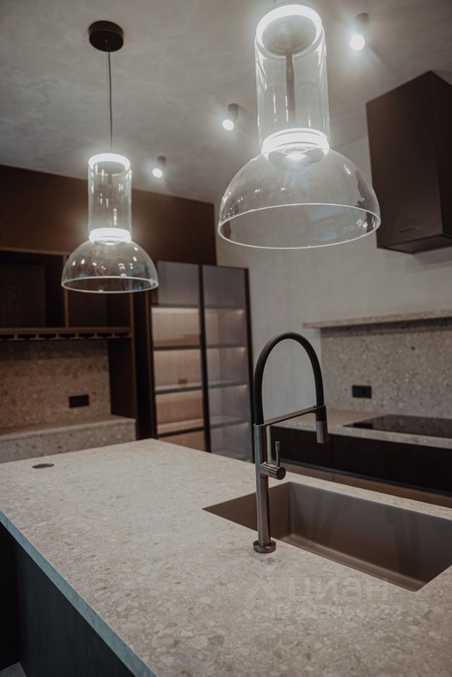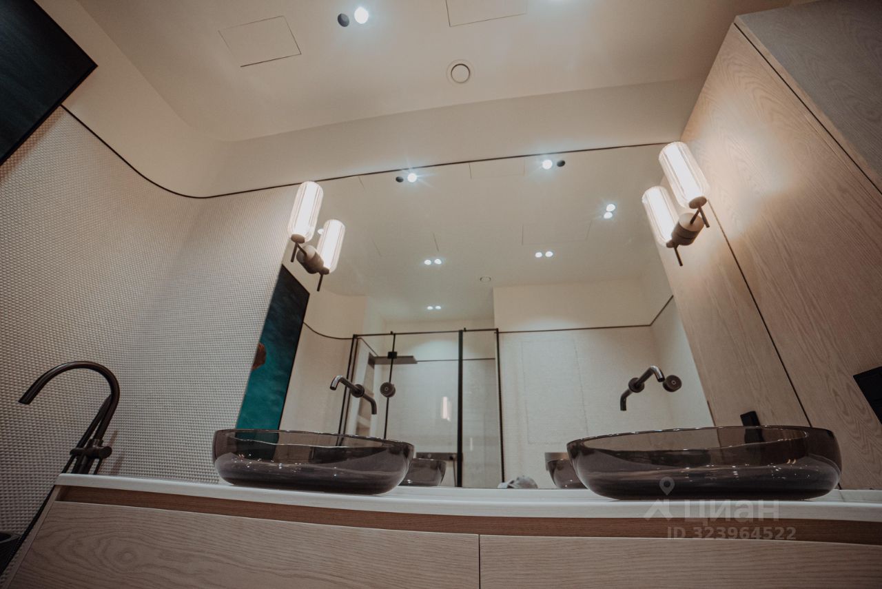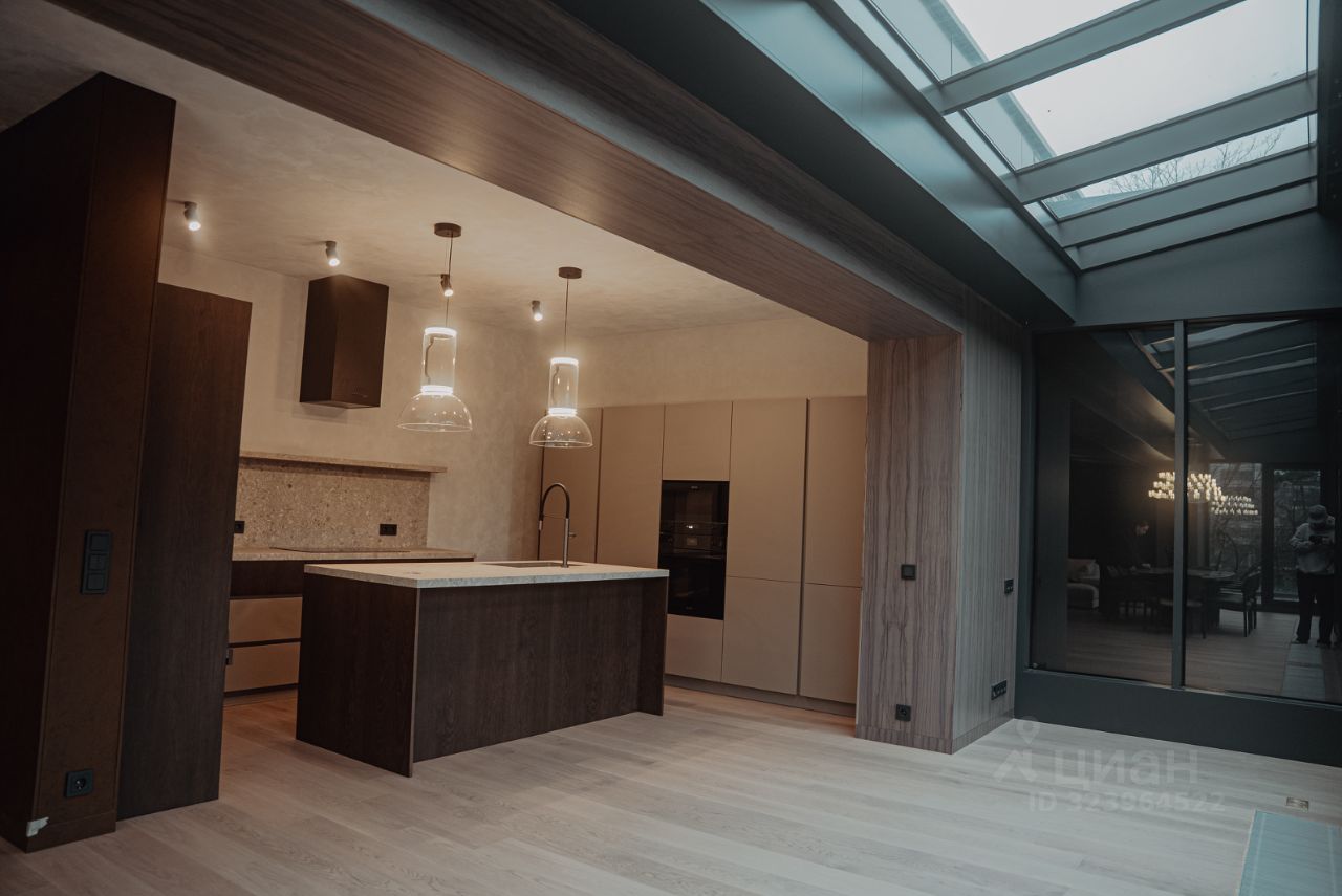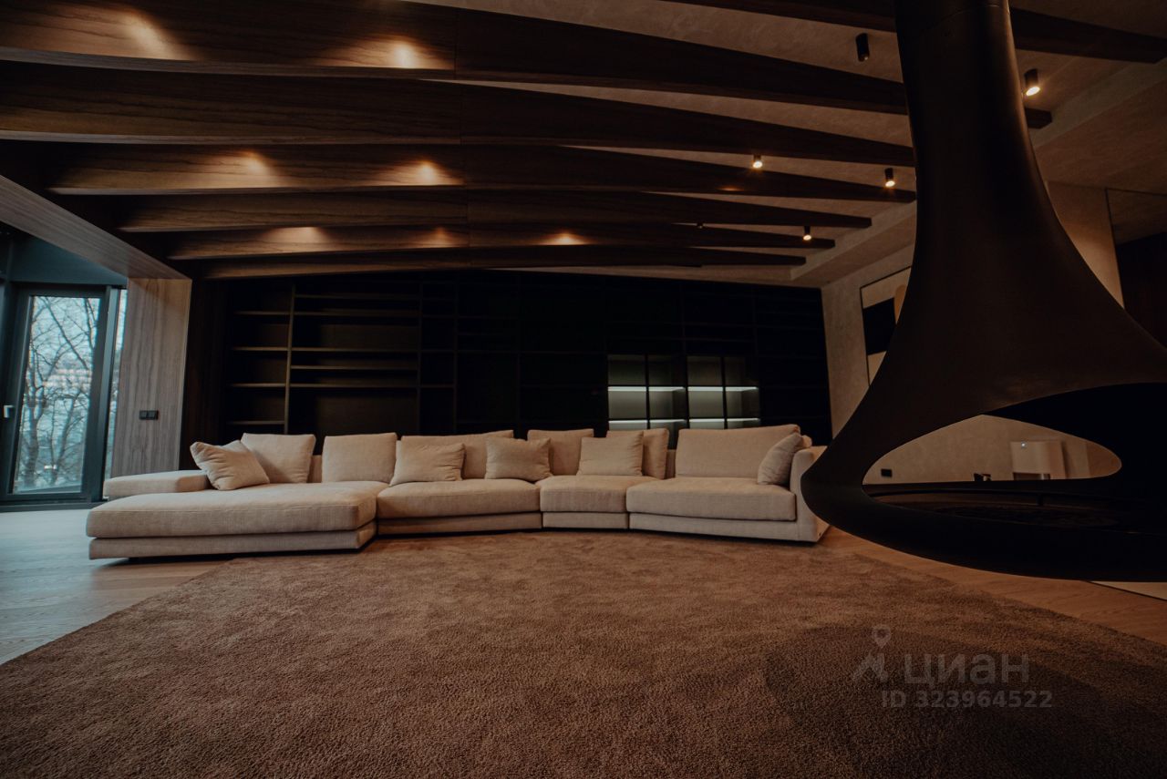 Интерьер выполнен по авторскому дизайн-проекту: натуральные материалы, мебель из Италии, панорамные окна, потолки 3,5 м.