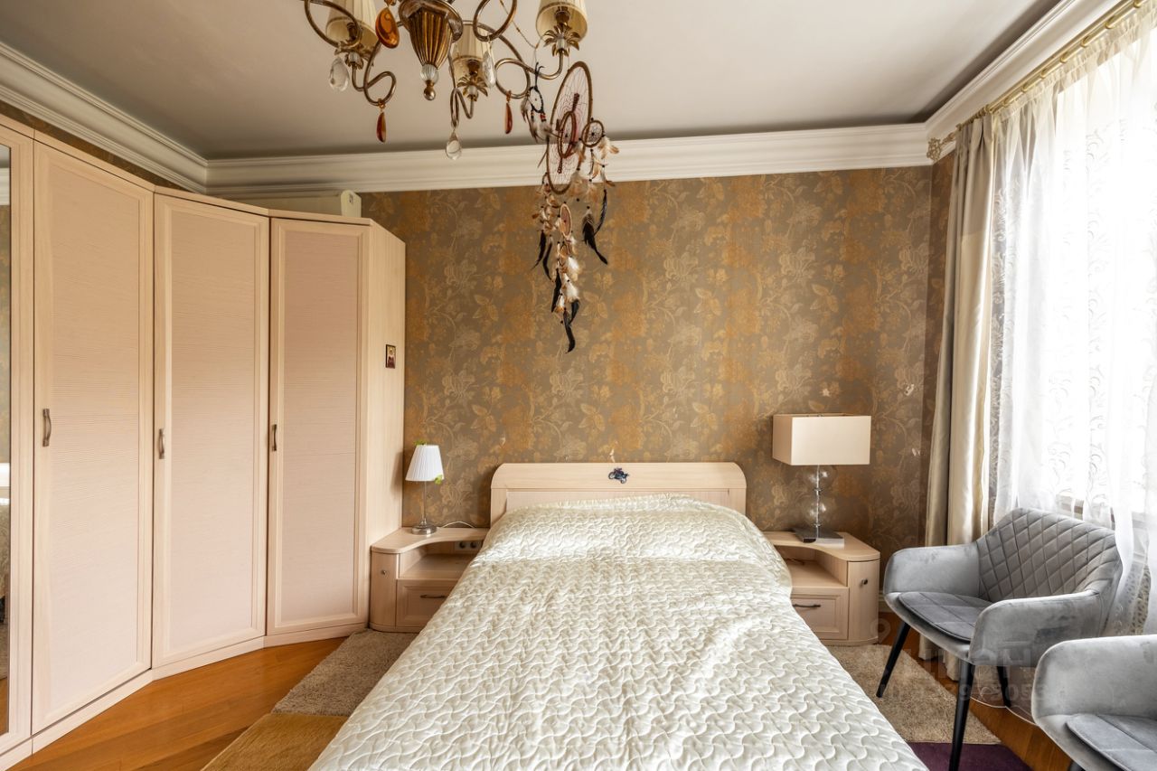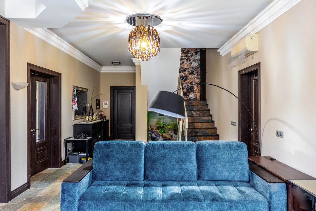 Предлагается на продажу большой кирпичный дом с участком, расположенный на высоком берегу речки Синички, откуда открывается прекрасный вид на лес и воду. Дом 3х этажный 5-ти уровневый. Помещения расположены слева и справа по лестнице на расстоянии в пол-этажа. Планировка и размеры помещений: 1 этаж: гостиная (40), кухня-столовая (50), детская (17), кабинет-мастерская (33) с открытой верандой (27), прихожая, 2 с/у, 2 этаж: спальня (24), кабинет (31) с открытой верандой (50), гостевая (33,5), две гардеробные (14+17), кухонный уголок, 2 с/у, Мансарда: оранжерея (42) Цокольный этаж: кинотеатр (34), кухня (17,9), тренажерная, сауна, хамам, купель, тех.помещение, кладовая, с/у. К дому примыкает теплый гараж на две машины (50). Дом имеет все центральные коммуникации: электричество, газ, вода, канализация. Отопление котел. Высота потолков варьируется от 2,5 до 4,1. Участок - 14 соток, покатый. На нем растет несколько садовых деревьев и кустарников. Есть возможность присоединить еще пару соток. Приятное окружение. Соседи все давно построились. Участок расположен в с. Ангелово в полутора километров от границы с Москвой. До станции метро Пятницкое шоссе - 3 км. Дорога асфальтированная. Ходит общественный транспорт. Развитая микроструктура: магазины, торговые центры, школа, садик, две церкви, спортивные организации.