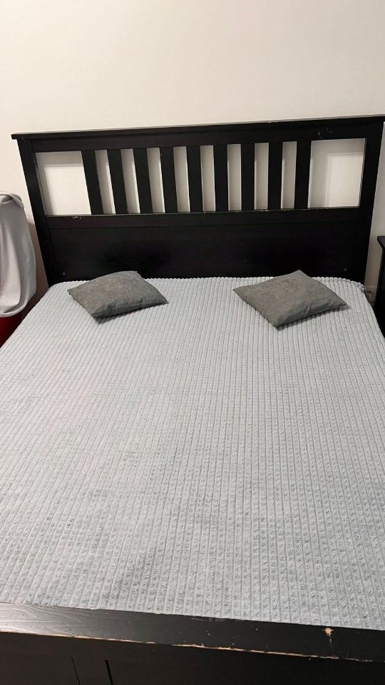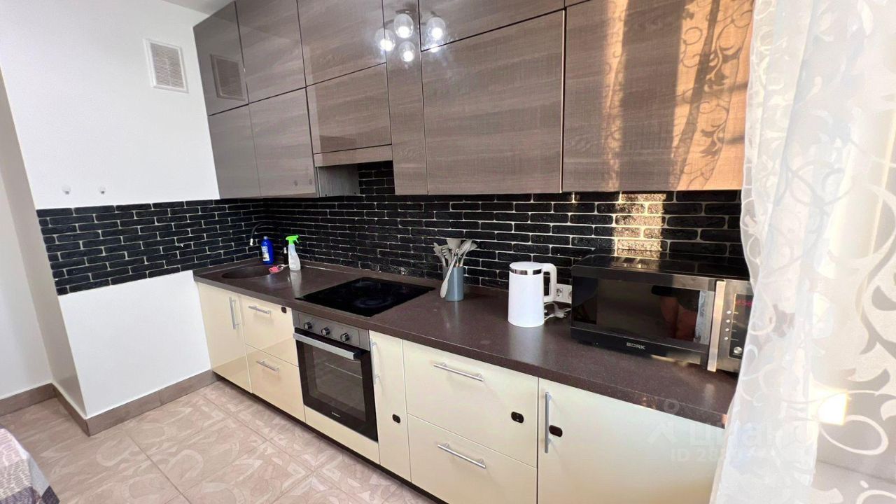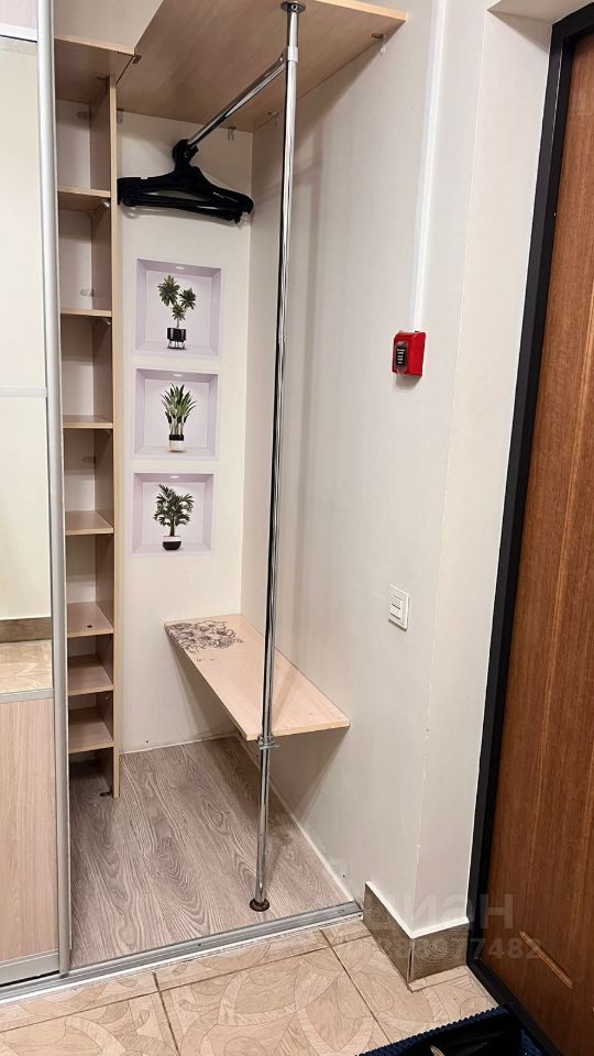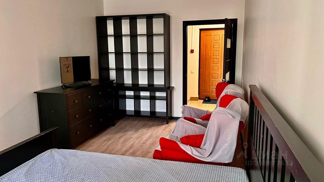 В квартире есть двуспальная кровать, два кресла, комод, телевизор, стеллаж, кухонный гарнитур, варочная панель, духовой шкаф, холодильник, стол кухонный, стулья, СВЧ печь, электрочайник, набор посуды, стиральная машинка, гардеробная комната, утюг, сушилка, гладильная доска.