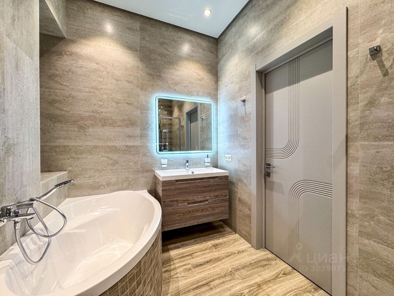По планировке: -Просторная кухня -Спальня с двуспальной кроватью и ортопедическим матрасом 200х180 -Лоджия с небольшим кладовым помещением (за черной дверью на фото) -Кабинет с раскладывающимся диваном и оборудованным рабочим местом -Большой сан.узел с ванной и отдельностоящей душевой кабиной Кондиционеры в каждой комнате, подогрев пола на кухне, в лоджии,в коридоре и сан.узле. Дополнительно на кузне установлены: фильтр для питьевой воды, измельчитель бытовых отходов в раковине.