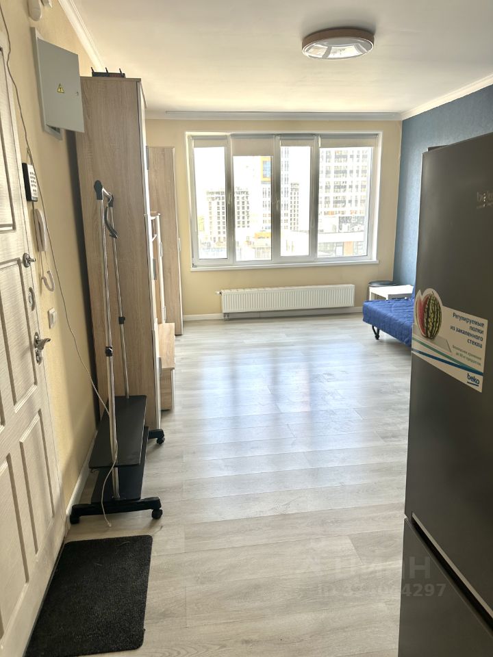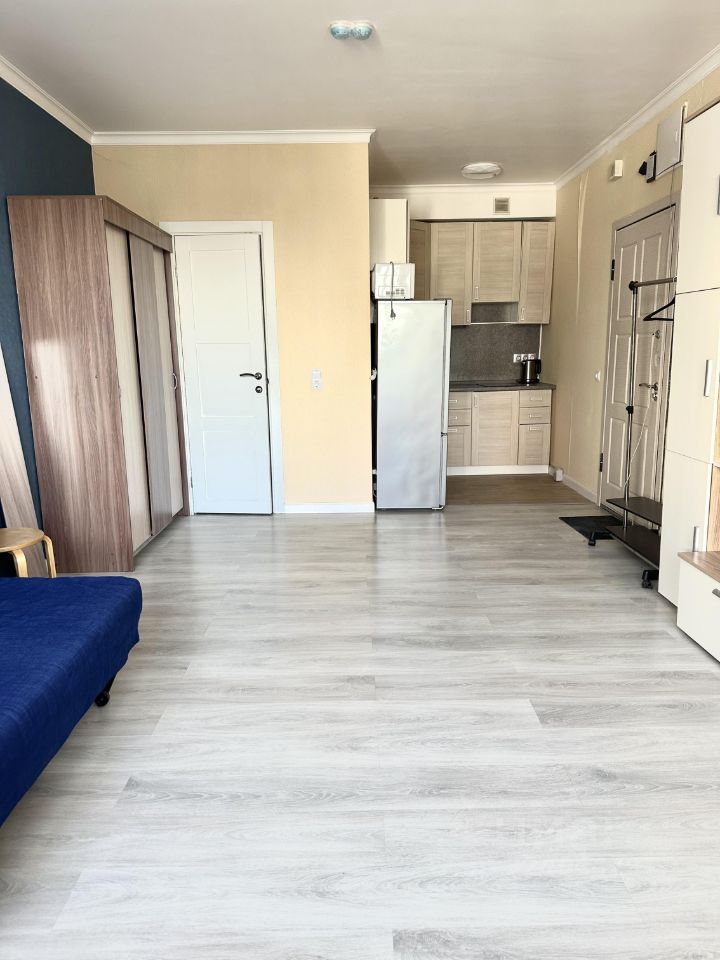 Внутри апартаменты радуют современным евроремонтом. Пространство студии грамотно организовано: жилая площадь составляет 15 кв. м, а кухня — 5 кв. м. В квартире есть вся необходимая мебель, как на кухне, так и в жилой зоне. К вашим услугам также вся необходимая техника, включая холодильник и стиральную машину. Санузел совмещенный, оборудован ванной. Окна выходят на улицу, что обеспечивает хорошую освещенность и тихую атмосферу.