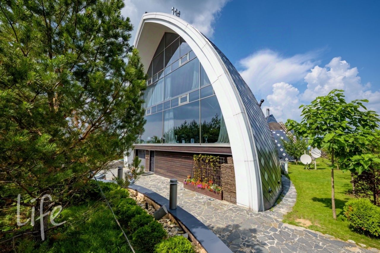 Дом изготовлен из цельнотянутой бетонной оболочки. Утеплитель — пенополиуретан. Отопление, вентиляция и кондиционирование производится с помощью австрийской установки Menegra, обеспечивающей воздушное отопление.