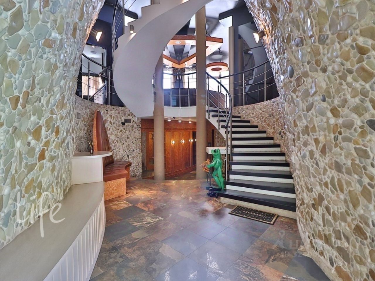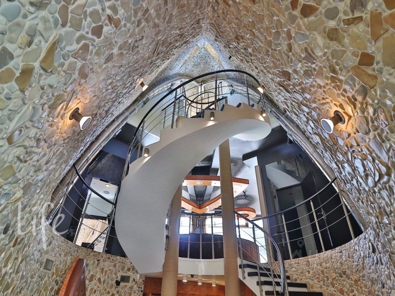 Вся мебель в доме сделана по авторским проектам владельцев, в доме нет ни одного стандартного прямого угла, всё очень продуманно, создано для удобства жизни. Внутренняя отделка дома выполнена высококлассными материалами (итальянская плитка, широкоформатный паркет, натуральный камень), вся мебель в доме уникальна, сделана по индивидуальному дизайну.