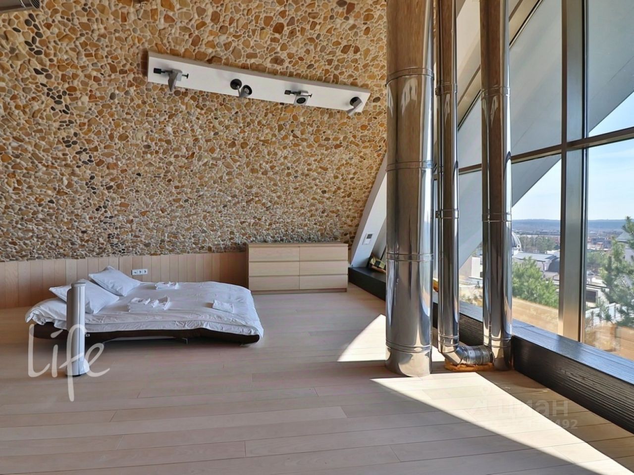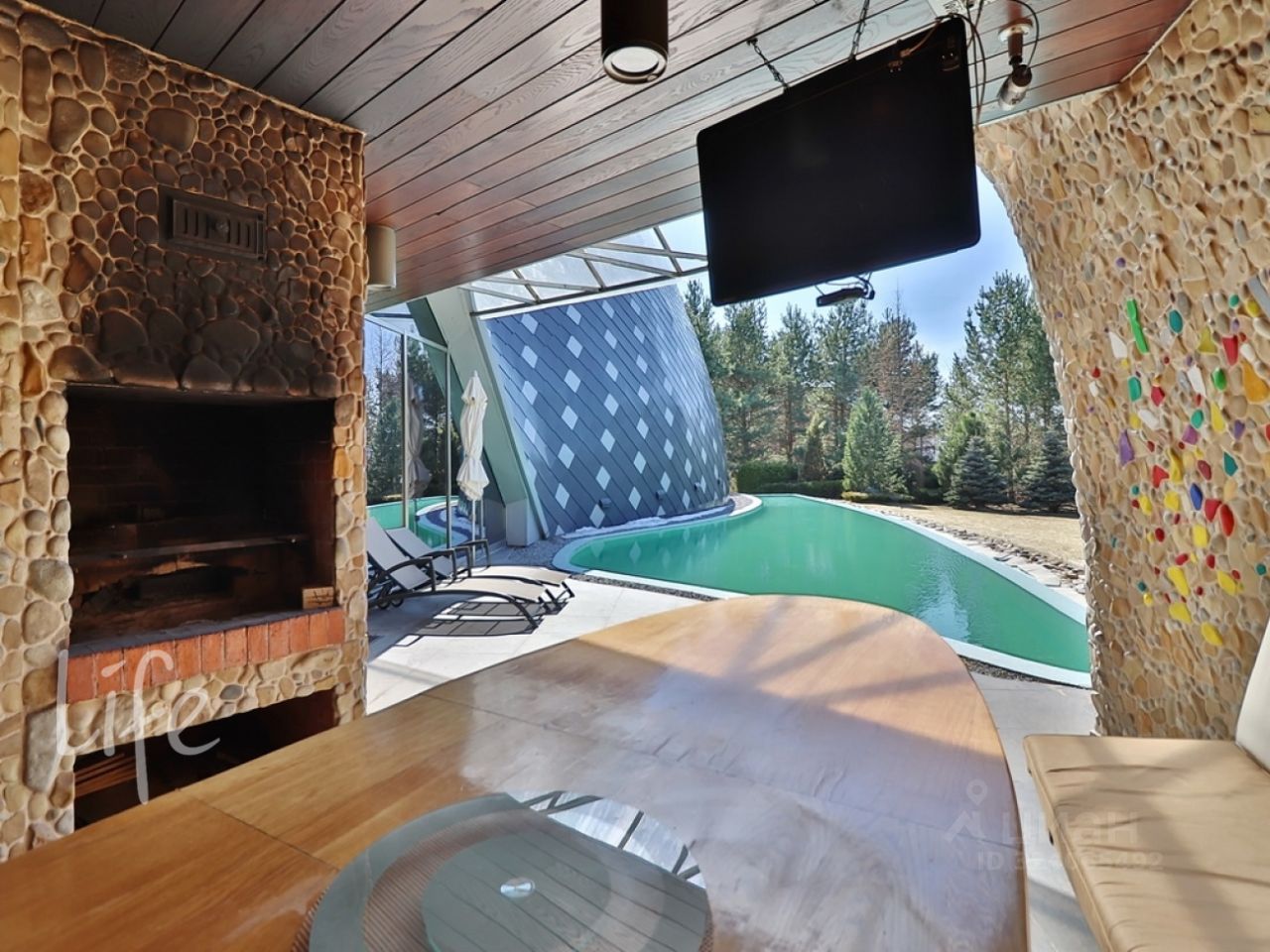 Планировка дома: 1 этаж: гараж на две машины, входная группа, большая гардеробная, с/у, застекленный переход в крыло, в котором расположена настоящая русская баня на дровах, открытый бассейн с подогревом, мангал, тандыр и большой стол для гостей (на отапливаемой застекленной веранде). 2 этаж: огромная гостиная с панорамным окном, удобная кухонная зона с баром, 2 спальни, каждая со своим с/у, хозяйская спальня с с/у. Мансарда: гостевая комната.