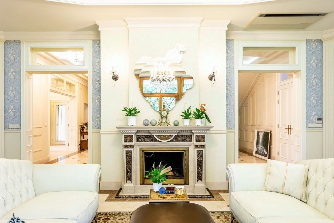 Полнocтью меблировaнный итальянcкой мебeлью. В гостиной установлен мраморный дровяной камин, в столовой удобный выход в зону отдыха с бассейном и барбекю. В отделке использованы дорогие материалы, такие как мрамор и массив дерева. В каждой спальне есть свой балкон с красивыми видами, а также санузел и гардеробная. Кинотеатр, кабинет и бильярдная. Установлены теплые полы, центральное кондиционирование, видеонаблюдение и охранная система.