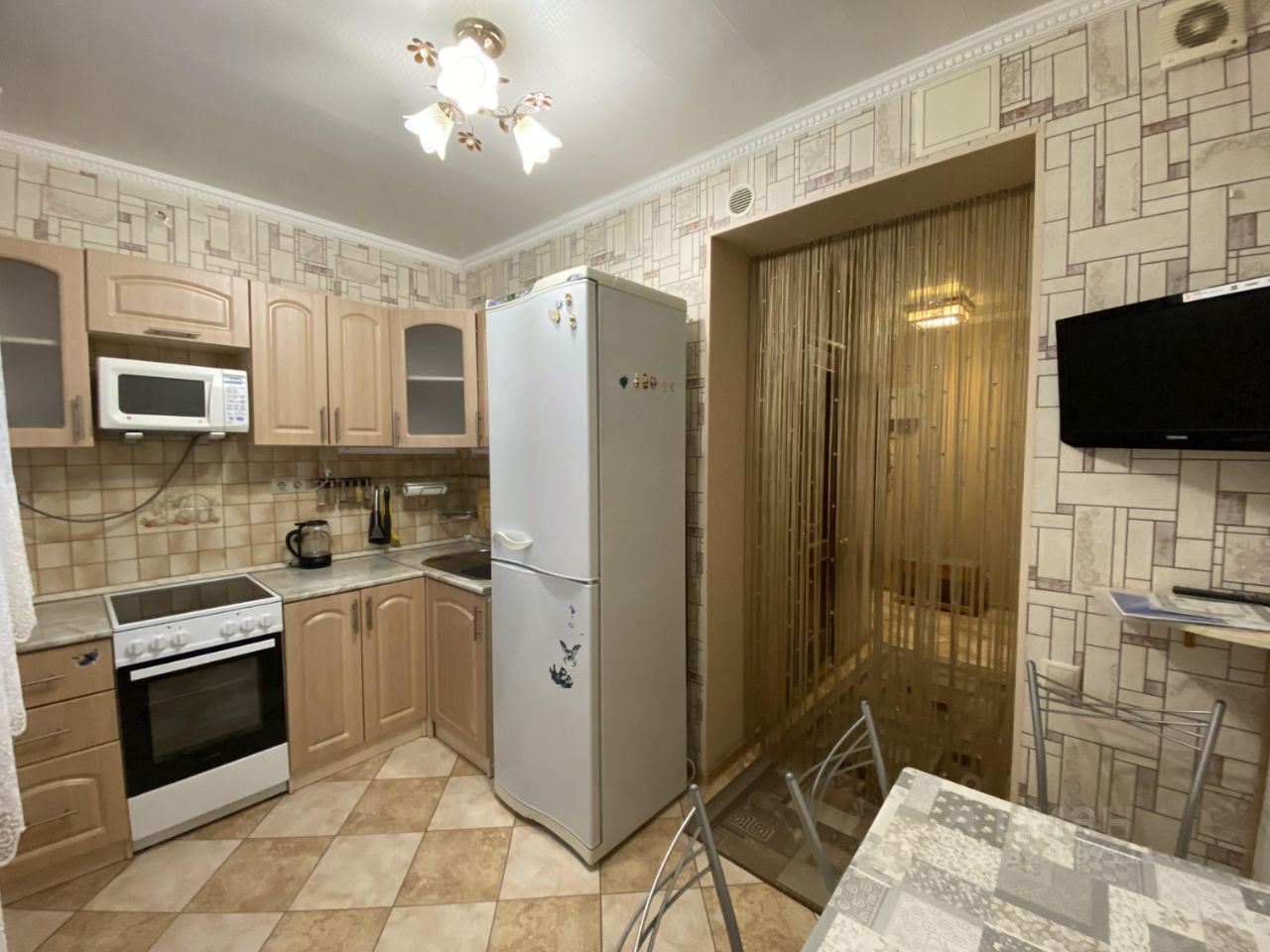 Из техники в наличии двухкамерный холодильник, микроволновая печь, электрический чайник, варочная панель, духовка. Так же есть отдельная морозильная камера, расположена на лоджии.
