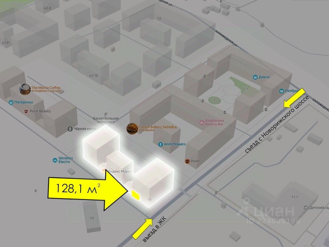 Характеристики помещения: МО, г.о. Красногорск, пос. Ильинское-Усово, Архангельская улица, 15 Помещение угловое, 1 вход, панорамные окна. Напротив находится большая парковка.