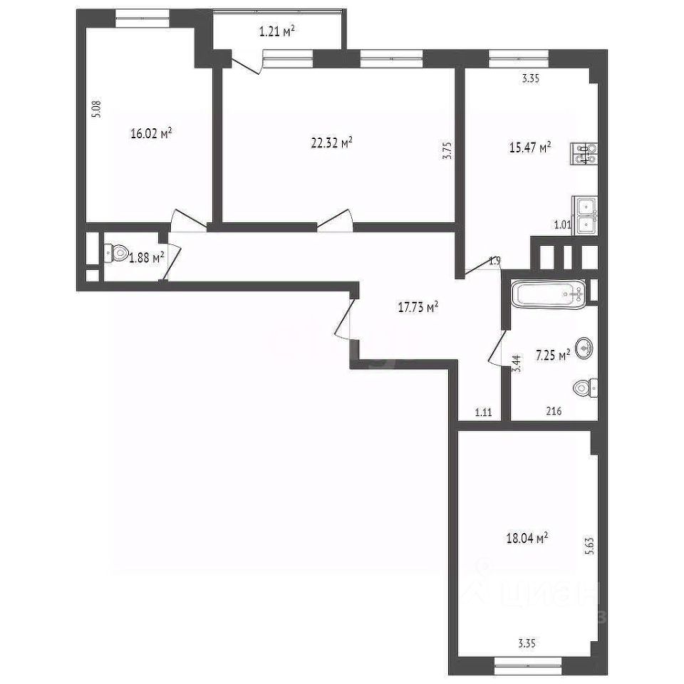 ГЛАВНЫЕ ОТЛИЧИЯ КВАРТИРЫ - ФУНКЦИОНАЛЬНОСТЬ: Удачное планировочное решение с видом из окон на две стороны, Все комнаты изолированы и имеют правильную геометрическую форму, Большая кухня (15,47 м2) - любимое место большой семьи, Просторная гостиная (22,32 м2) с выходом на балкон, Две уютные комнаты площадью (16,02 и 18,04 м2), одна из которых с выходом на балкон, Стильная спальня (14,3 м2) с гардеробной комнатой (3,0 м2) и с выходом на балкон, Вместительная прихожая (17,73 м2), Ванная комната (7,25 м2) , Сан узел (1,88 м2), который можно использовать как кладовую, гардеробную и т.д, Балкон (1,21 м2)